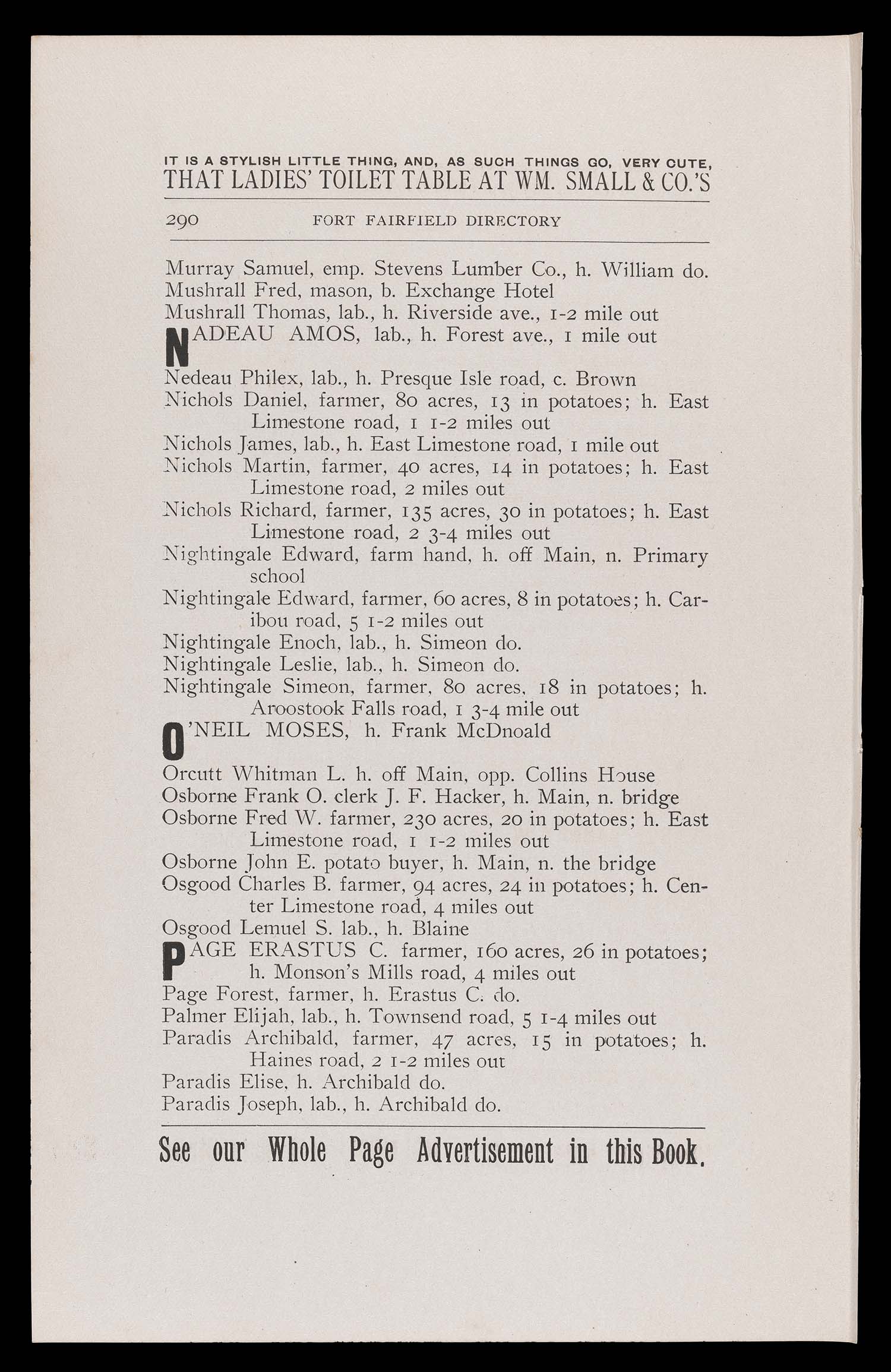 ↑ Parent: The Houlton directory, 1900 : a complete index to the residents, business, streets, etc. of the town of Houlton, Aroostook County, Maine with other useful information