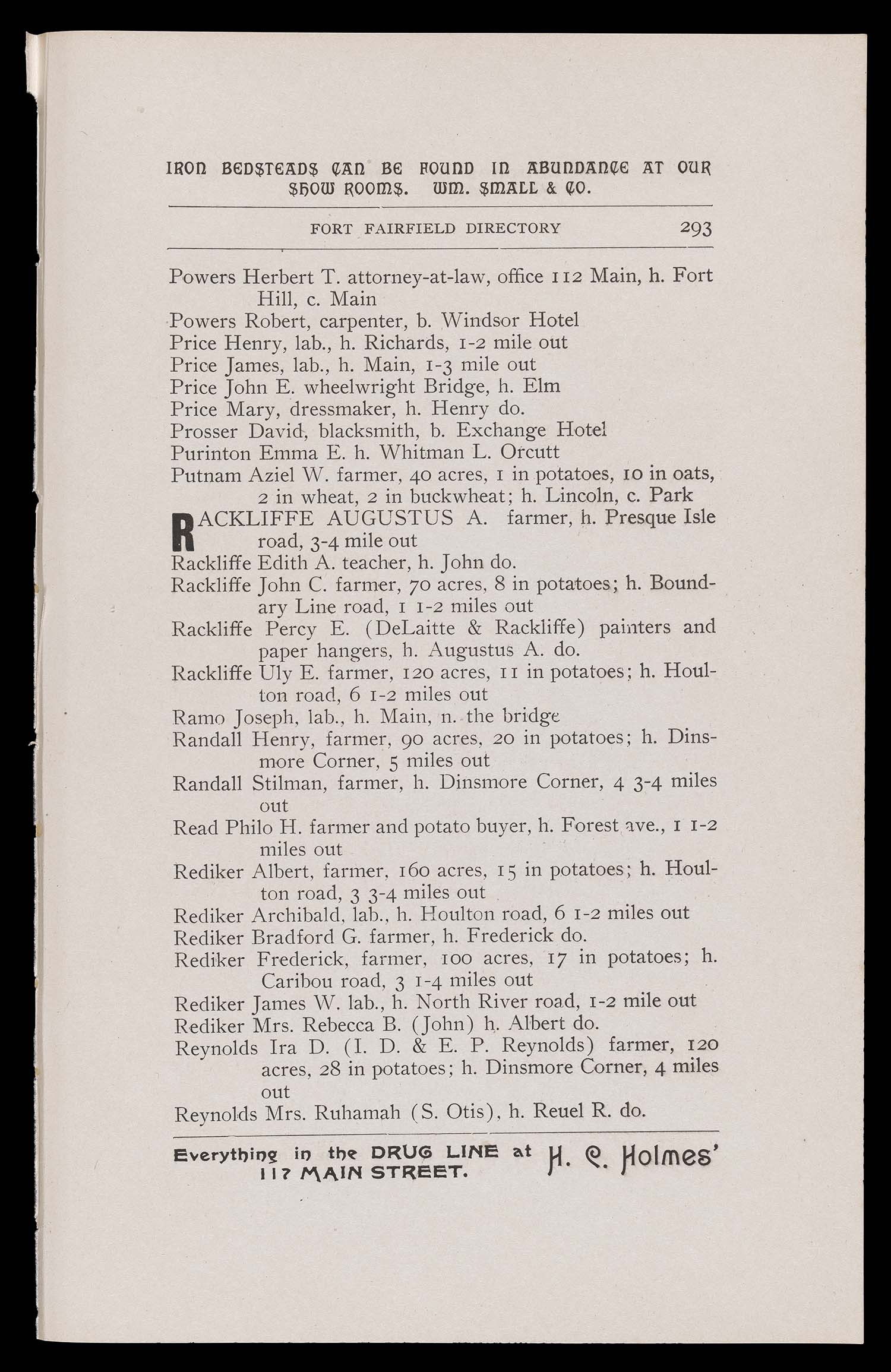 ↑ Parent: The Houlton directory, 1900 : a complete index to the residents, business, streets, etc. of the town of Houlton, Aroostook County, Maine with other useful information