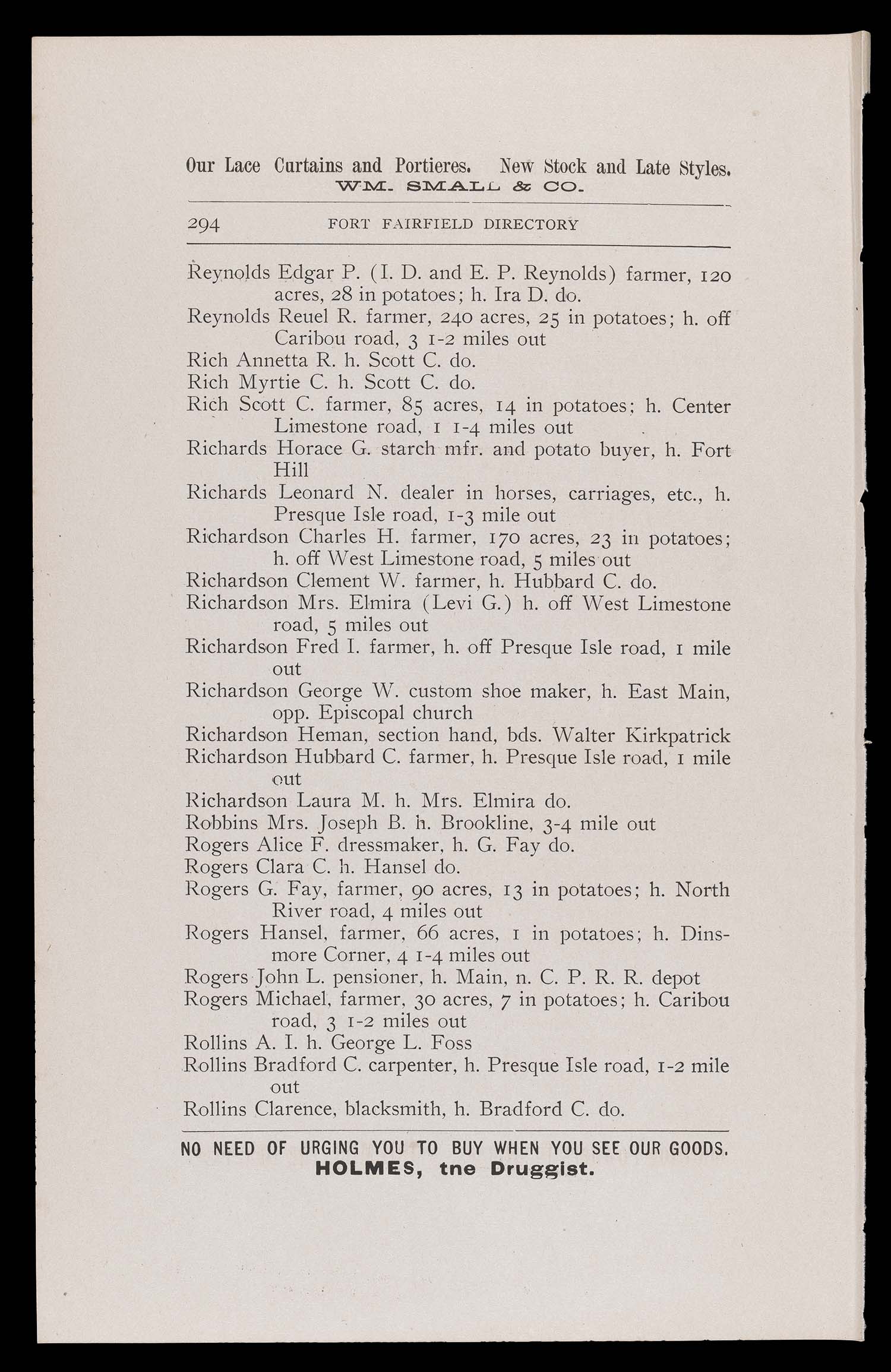 ↑ Parent: The Houlton directory, 1900 : a complete index to the residents, business, streets, etc. of the town of Houlton, Aroostook County, Maine with other useful information