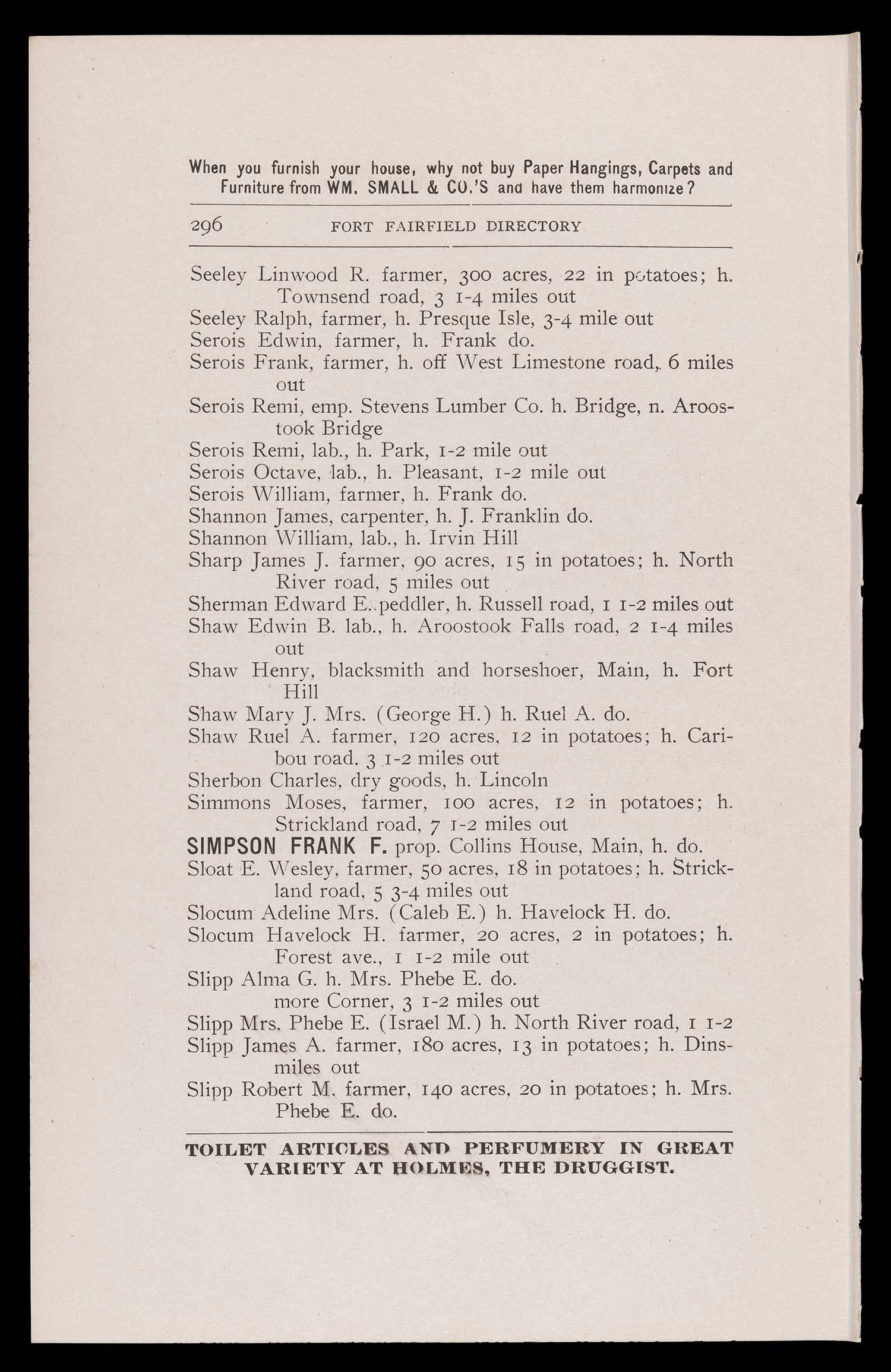 ↑ Parent: The Houlton directory, 1900 : a complete index to the residents, business, streets, etc. of the town of Houlton, Aroostook County, Maine with other useful information