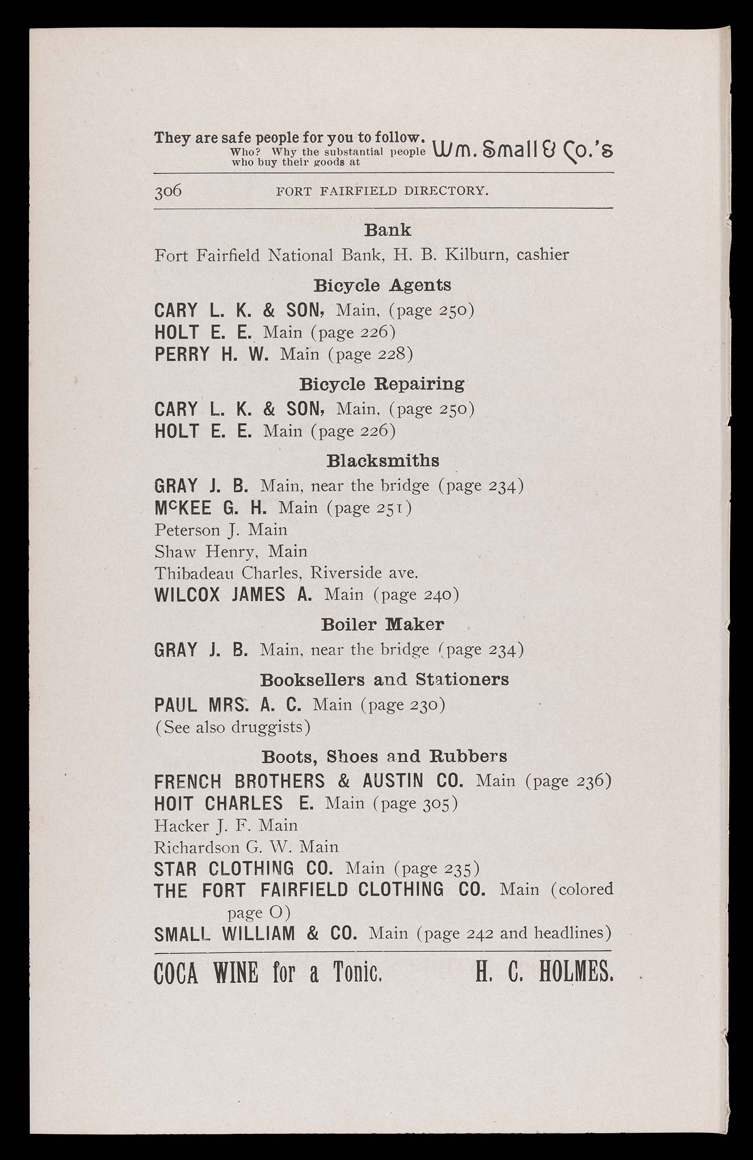 ↑ Parent: The Houlton directory, 1900 : a complete index to the residents, business, streets, etc. of the town of Houlton, Aroostook County, Maine with other useful information