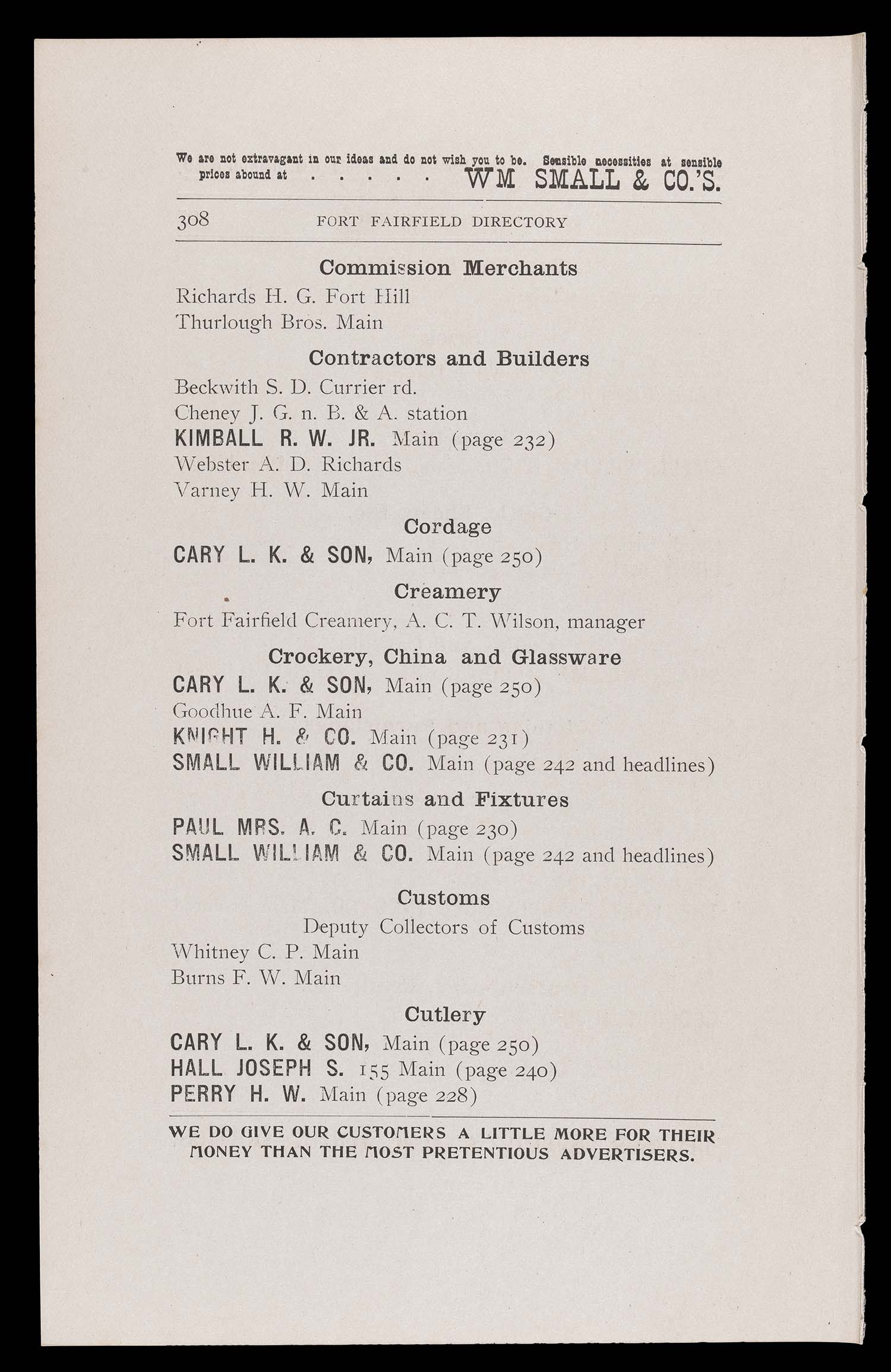 ↑ Parent: The Houlton directory, 1900 : a complete index to the residents, business, streets, etc. of the town of Houlton, Aroostook County, Maine with other useful information