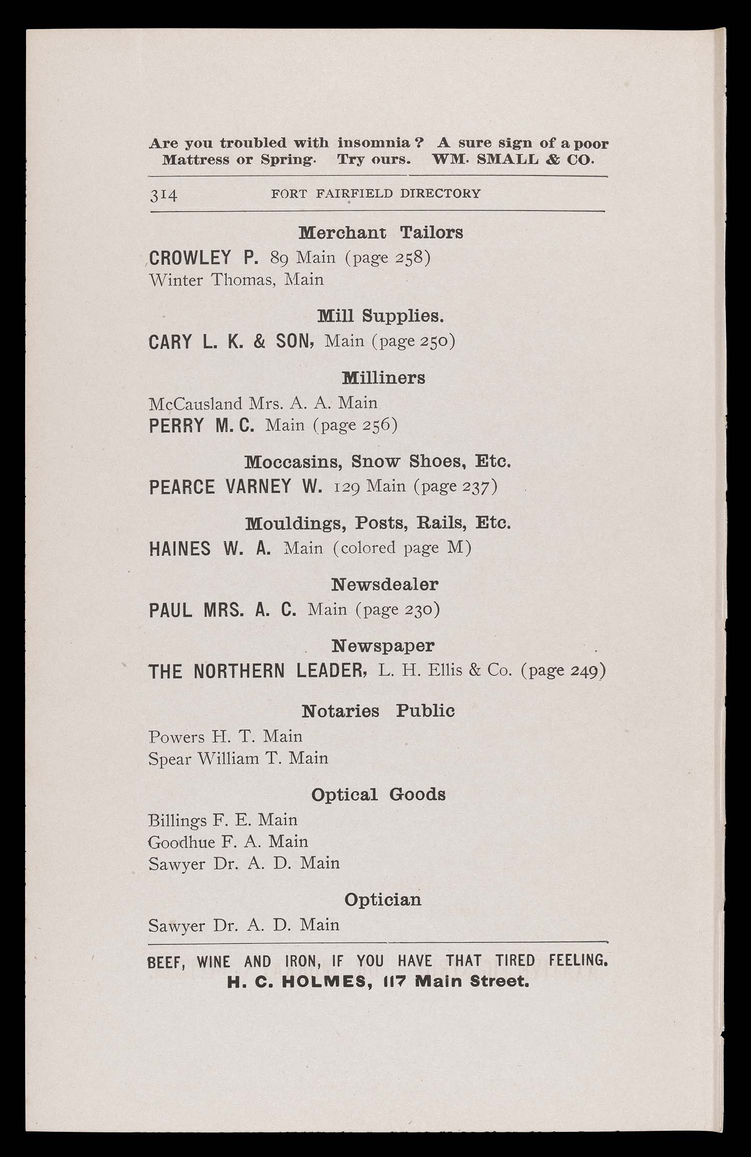 ↑ Parent: The Houlton directory, 1900 : a complete index to the residents, business, streets, etc. of the town of Houlton, Aroostook County, Maine with other useful information