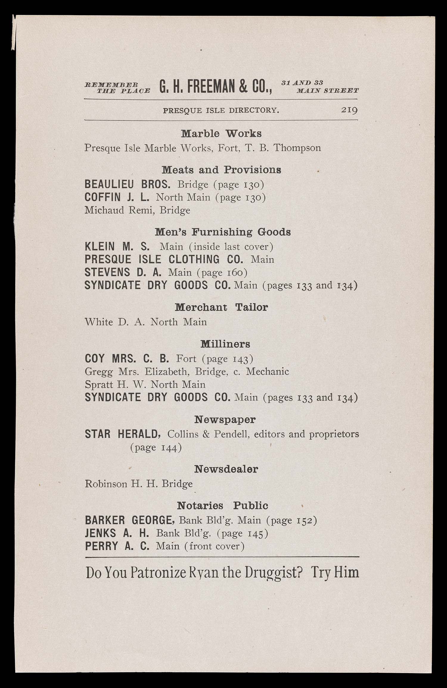 ↑ Parent: The Houlton directory, 1900 : a complete index to the residents, business, streets, etc. of the town of Houlton, Aroostook County, Maine with other useful information