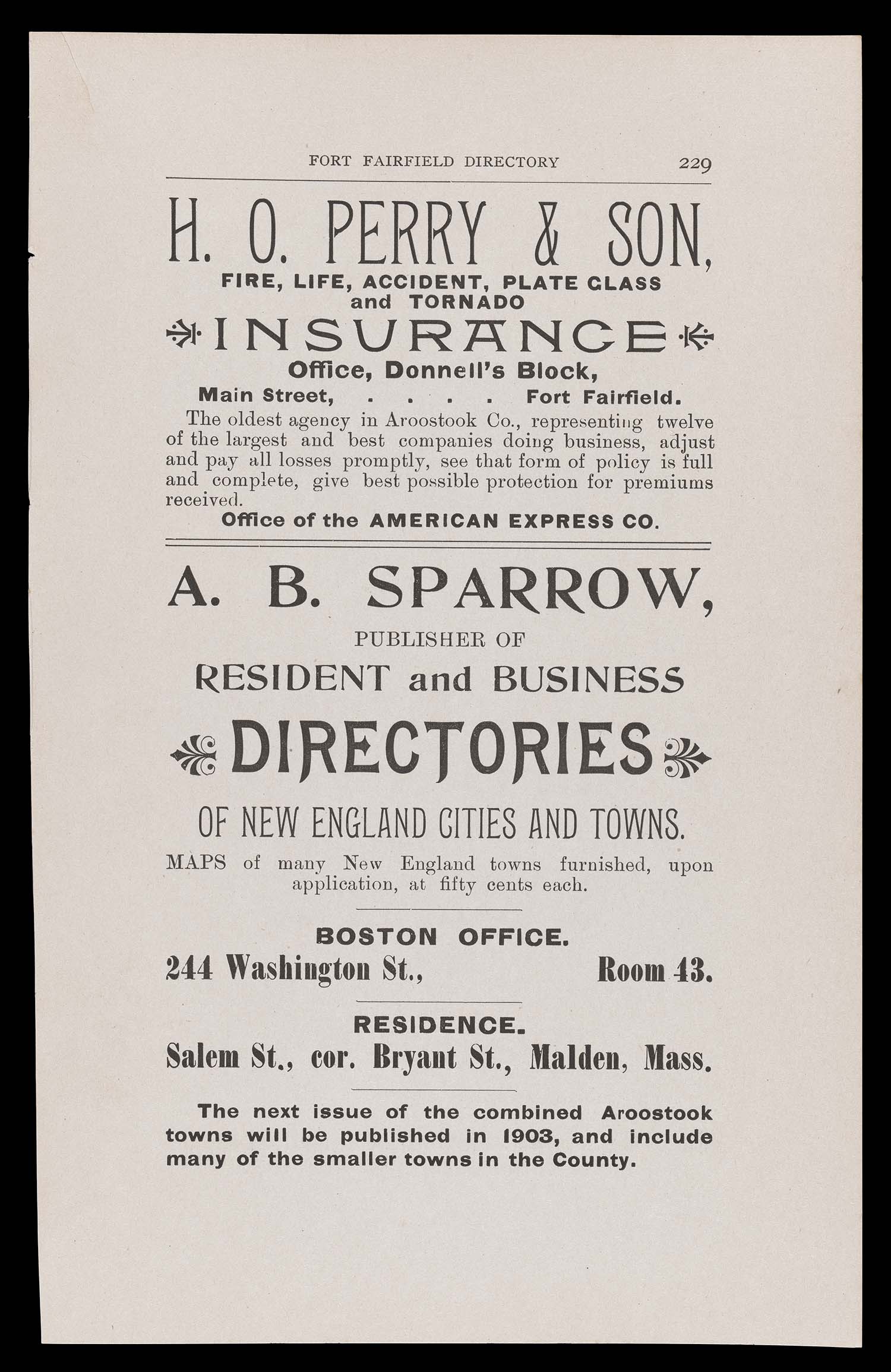↑ Parent: The Houlton directory, 1900 : a complete index to the residents, business, streets, etc. of the town of Houlton, Aroostook County, Maine with other useful information