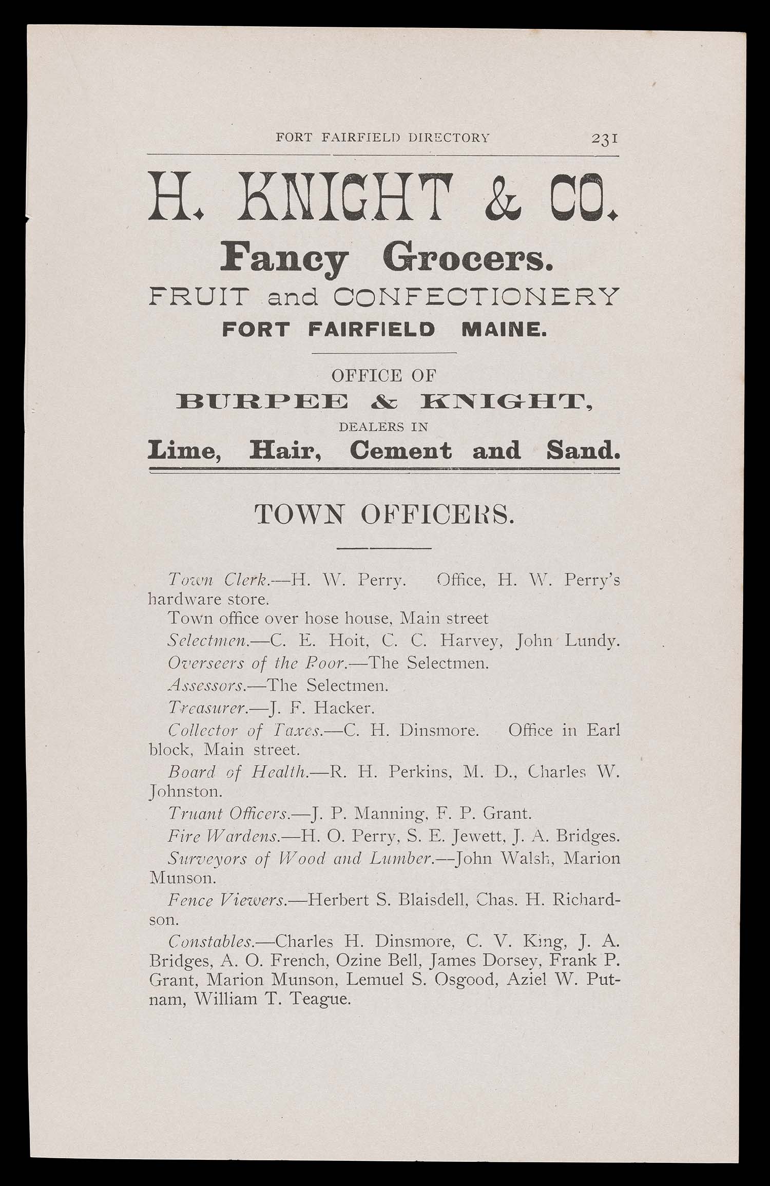 Name: Fort Fairfield Directory. Town Officers.