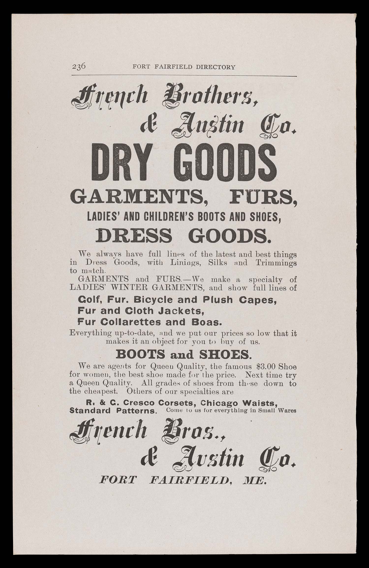 Name: Fort Fairfield Directory. Text (advertisement) page 67