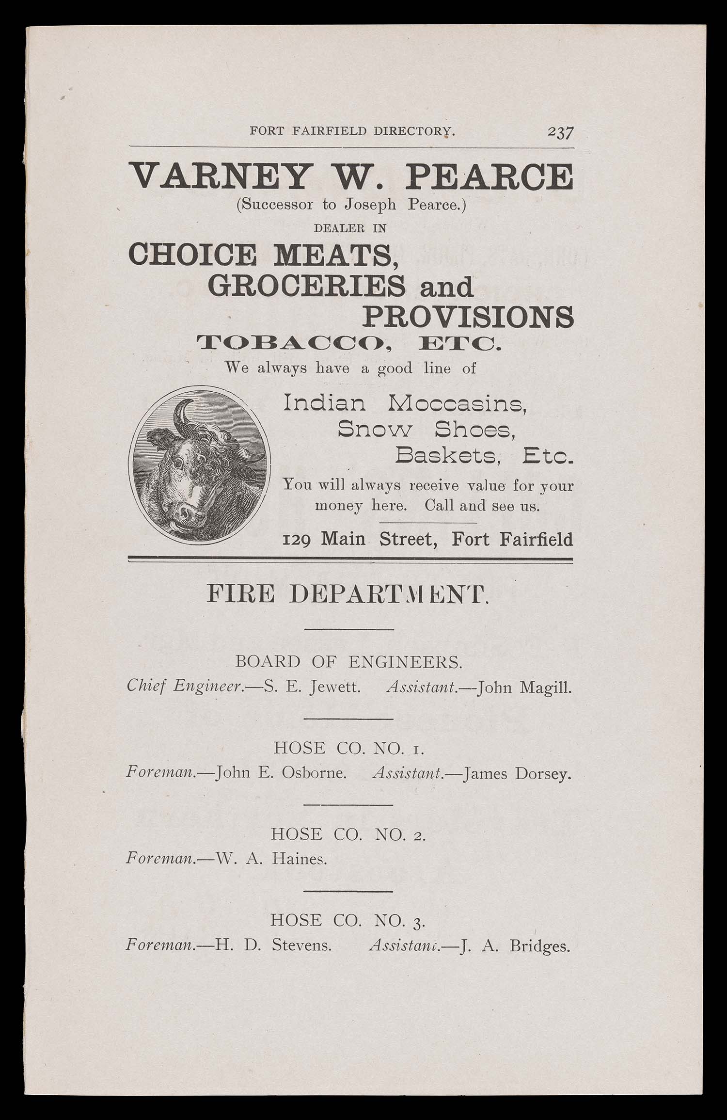 ↑ Parent: The Houlton directory, 1900 : a complete index to the residents, business, streets, etc. of the town of Houlton, Aroostook County, Maine with other useful information