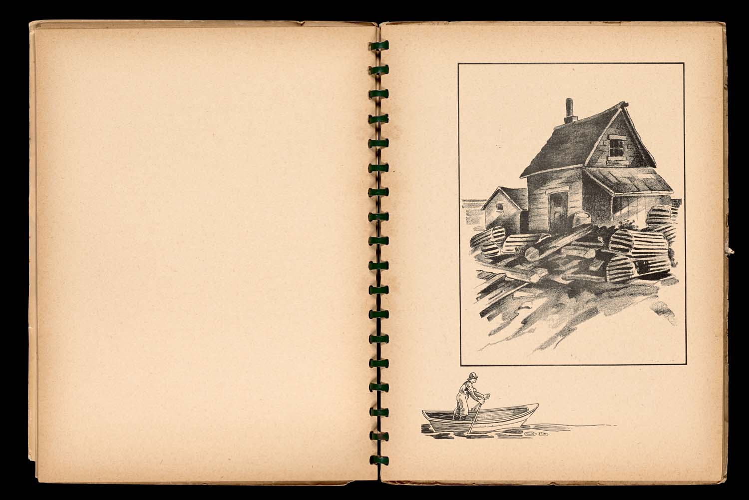 Notes: [Title taken from previous page. Shows shack and lobster traps, not lobsters.]
