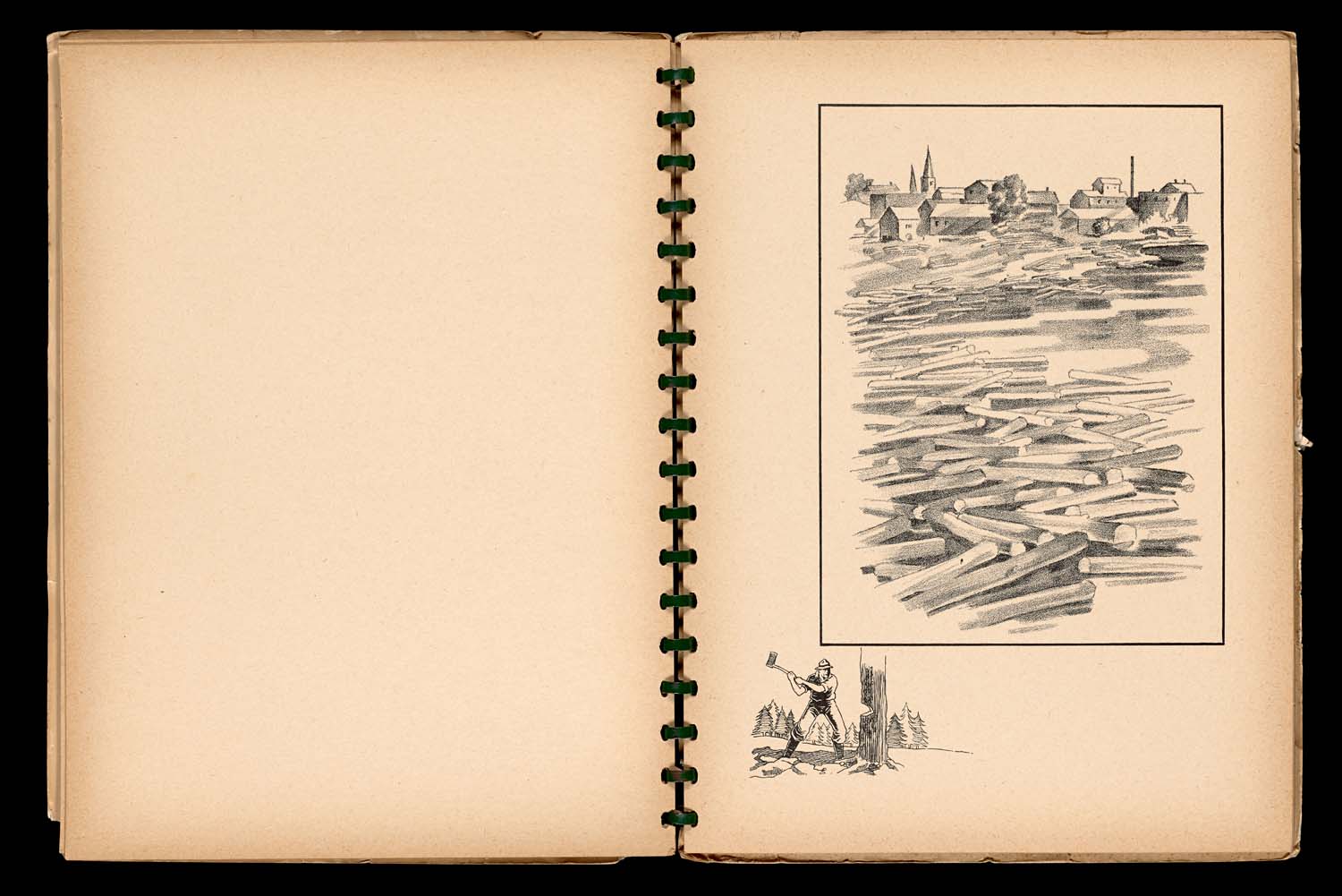 Notes: [Title taken from previous page. Image is of logs being floated down a river.]