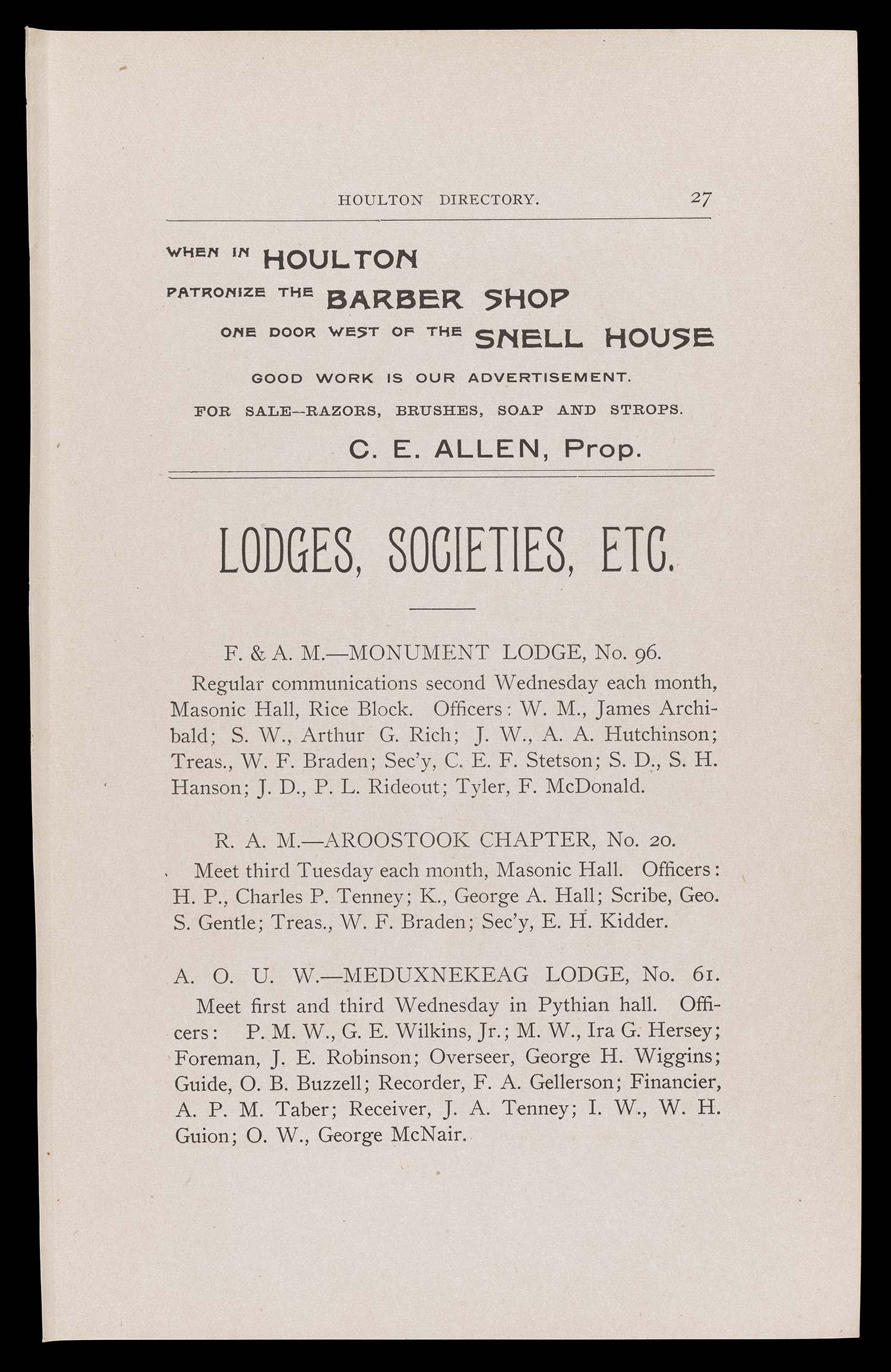 Name: The Houlton Directory. Lodges, Societies, etc.