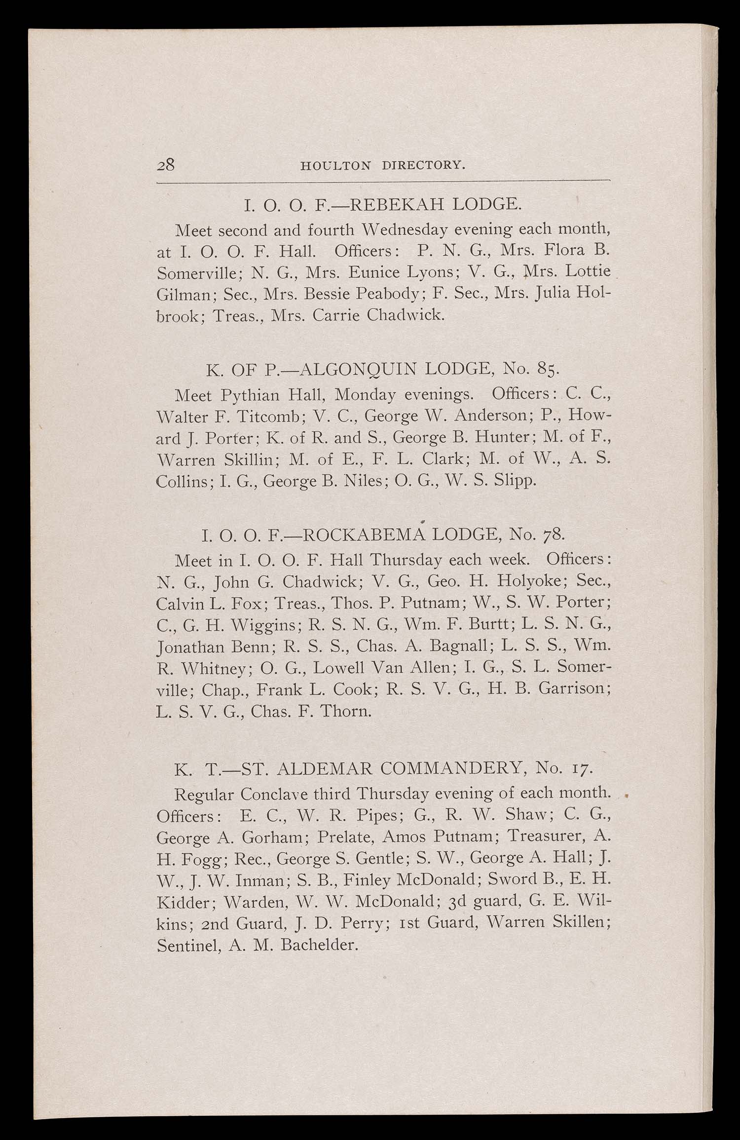 Name: The Houlton Directory. Lodges, Societies, etc.
