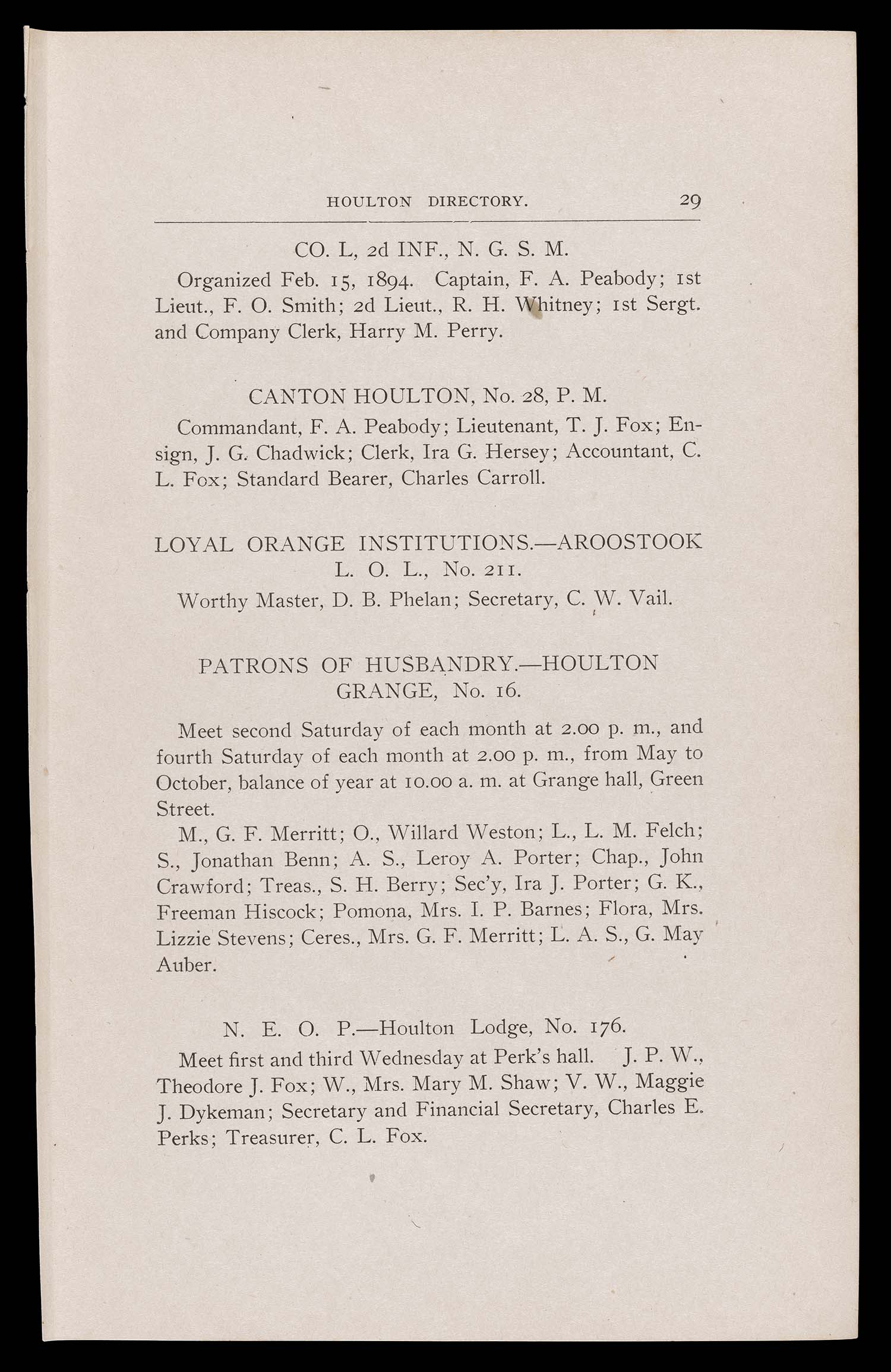 Name: The Houlton Directory. Lodges, Societies, etc.