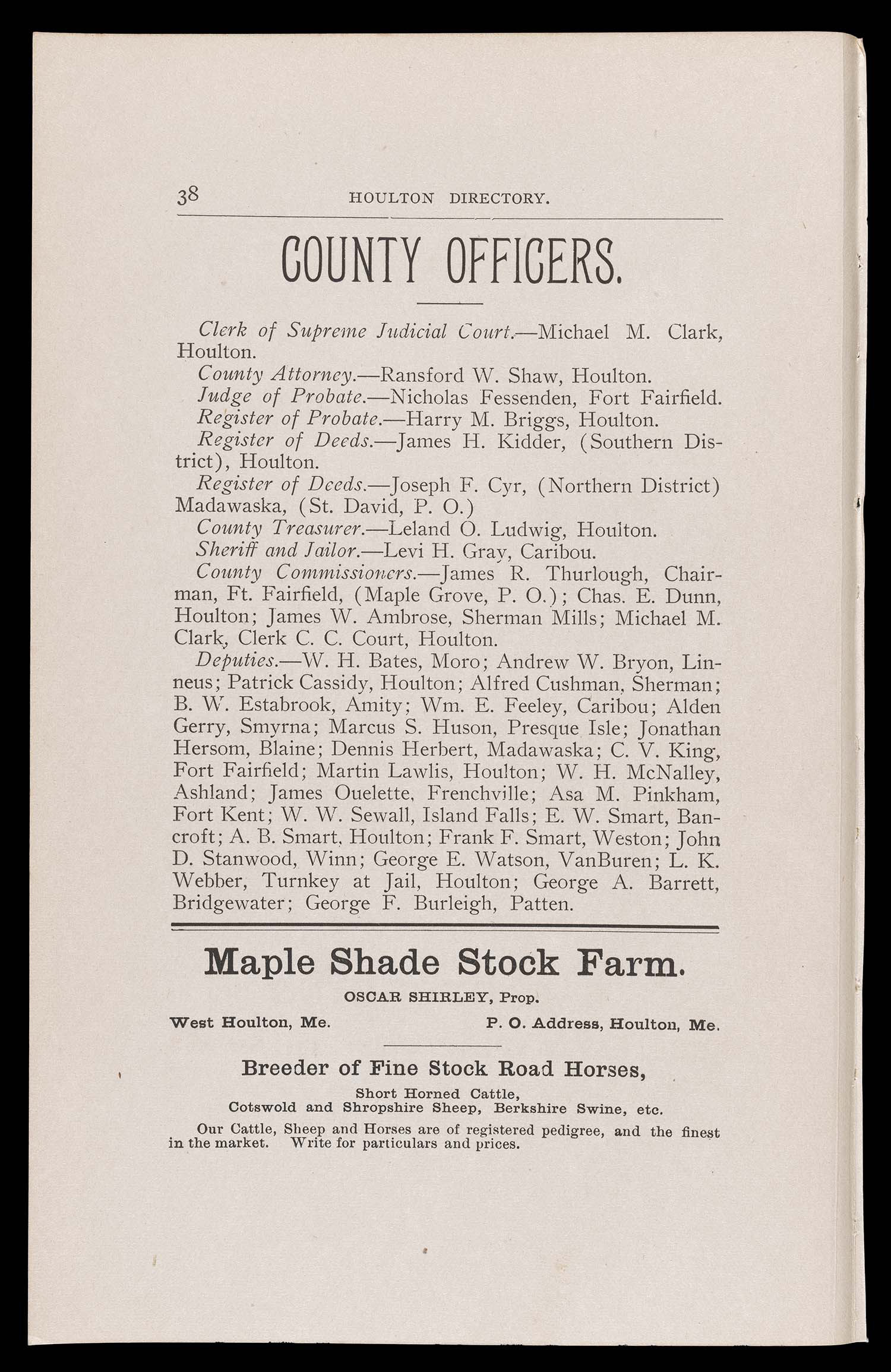 ↑ Parent: The Houlton directory, 1900 : a complete index to the residents, business, streets, etc. of the town of Houlton, Aroostook County, Maine with other useful information