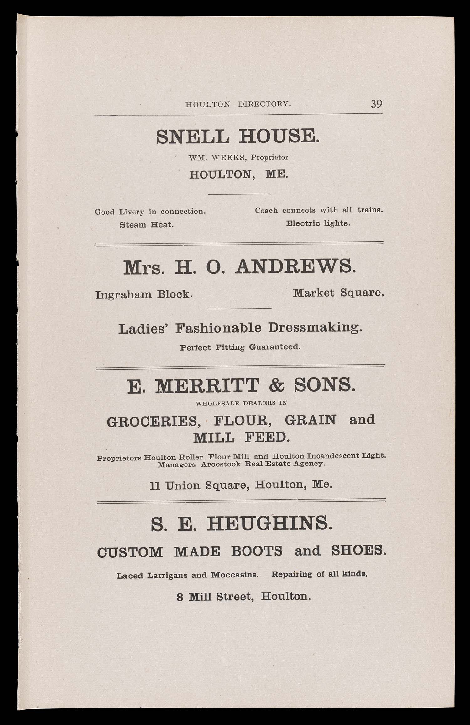 ↑ Parent: The Houlton directory, 1900 : a complete index to the residents, business, streets, etc. of the town of Houlton, Aroostook County, Maine with other useful information