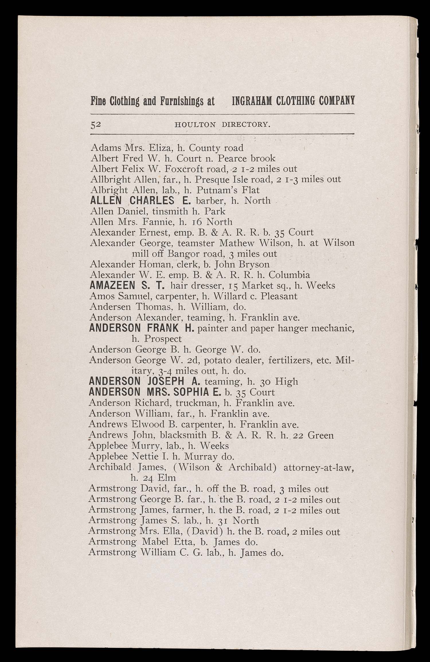 ↑ Parent: The Houlton directory, 1900 : a complete index to the residents, business, streets, etc. of the town of Houlton, Aroostook County, Maine with other useful information