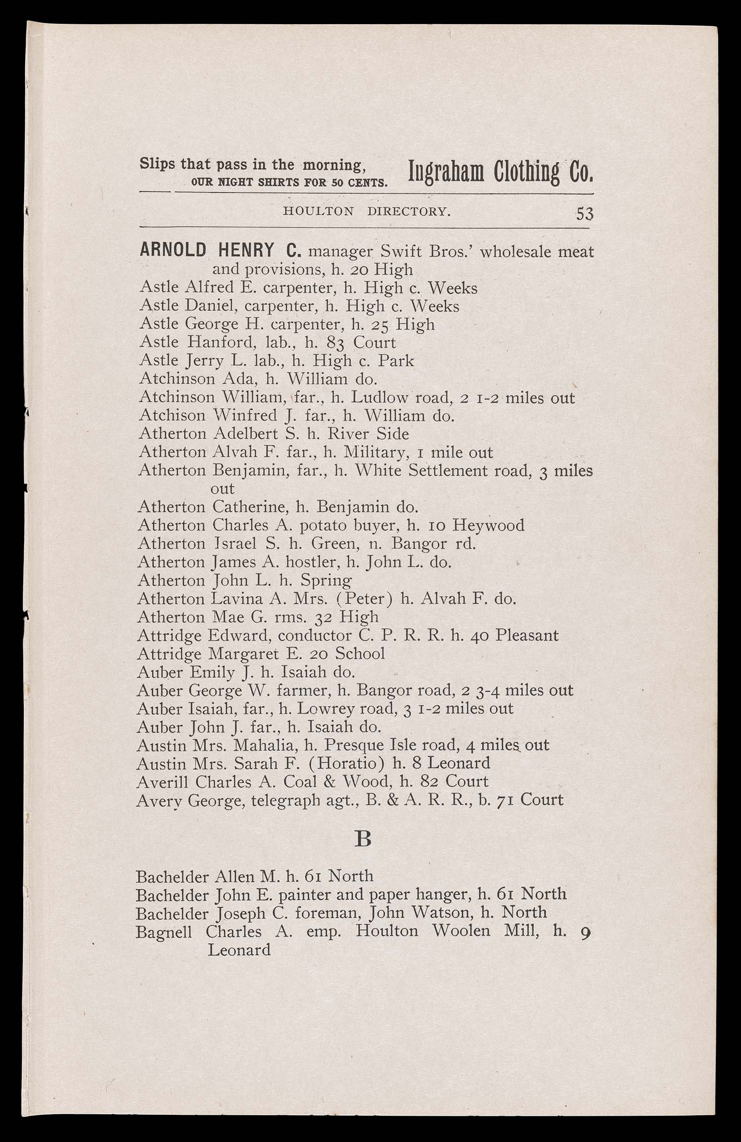 ↑ Parent: The Houlton directory, 1900 : a complete index to the residents, business, streets, etc. of the town of Houlton, Aroostook County, Maine with other useful information