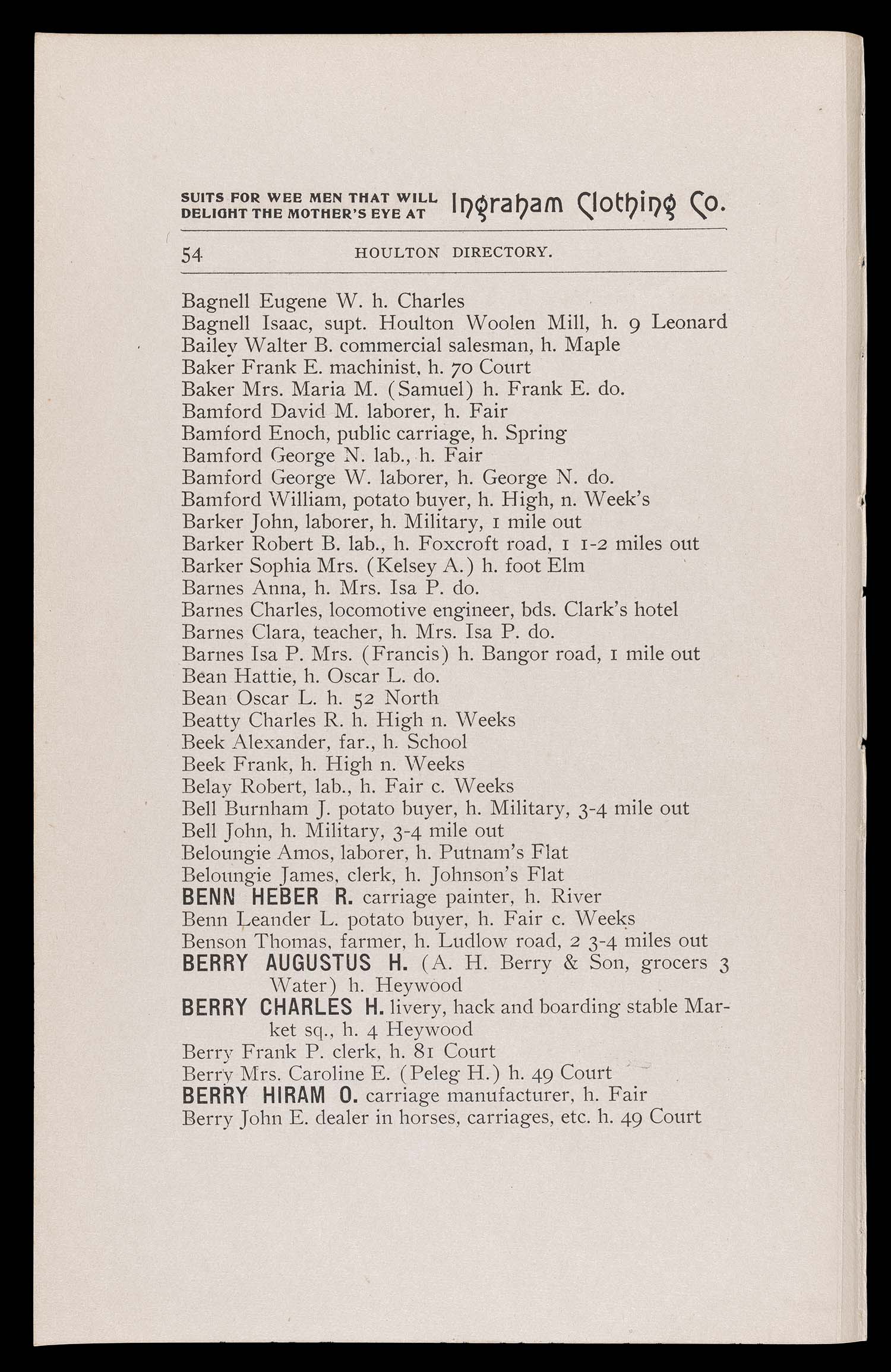 ↑ Parent: The Houlton directory, 1900 : a complete index to the residents, business, streets, etc. of the town of Houlton, Aroostook County, Maine with other useful information