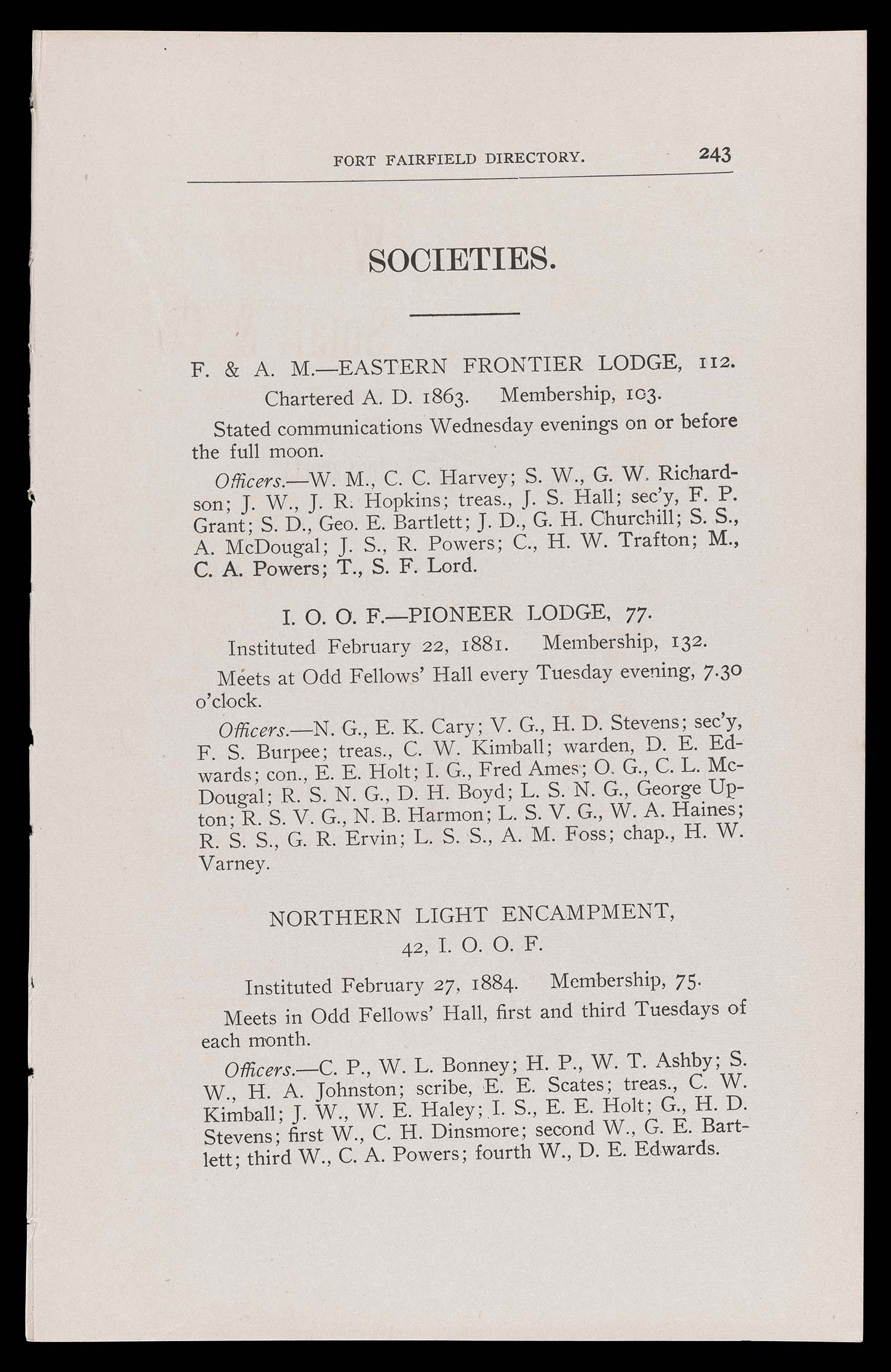 ↑ Parent: The Houlton directory, 1900 : a complete index to the residents, business, streets, etc. of the town of Houlton, Aroostook County, Maine with other useful information