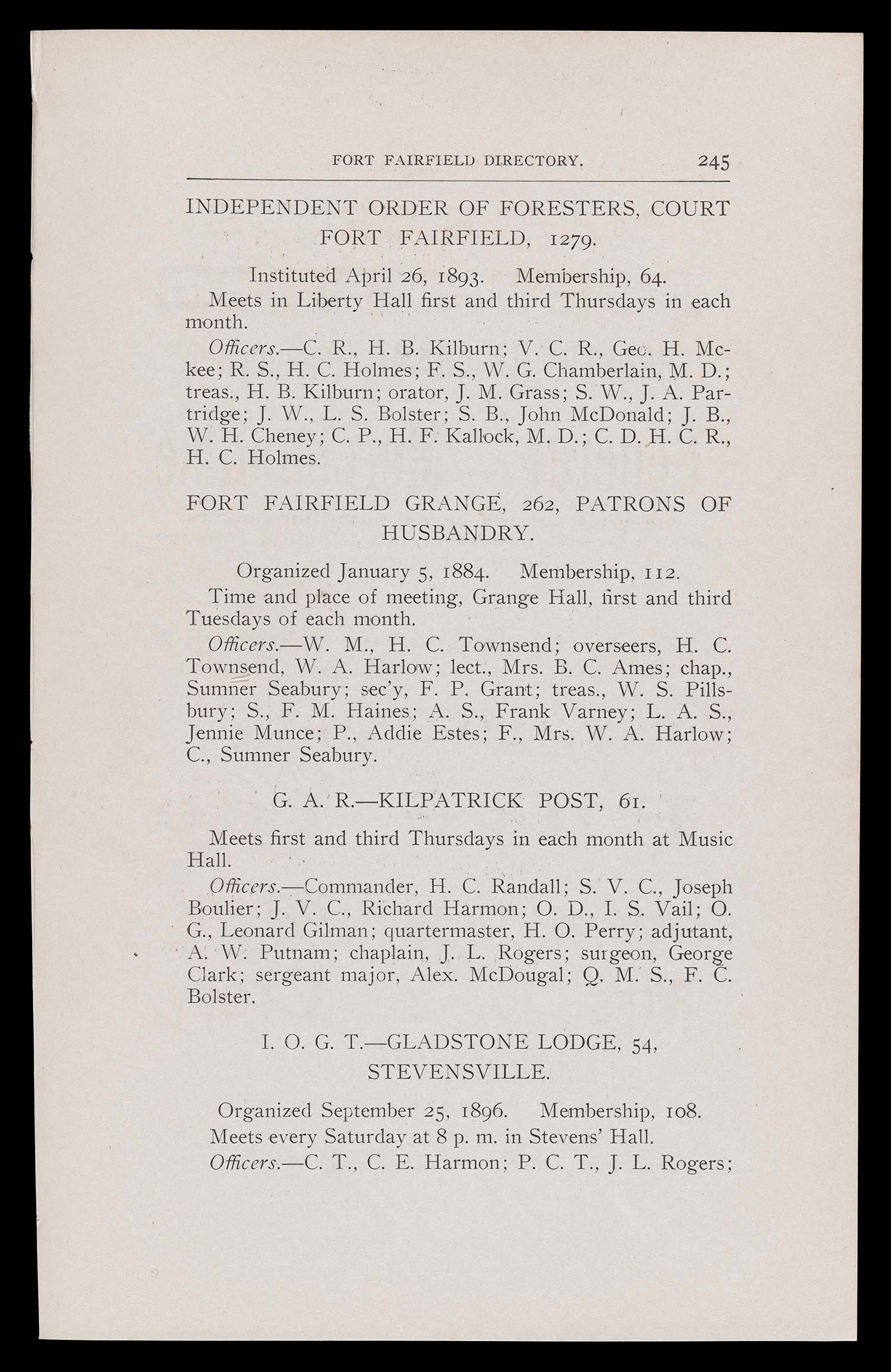 Name: Fort Fairfield Directory. Societies.