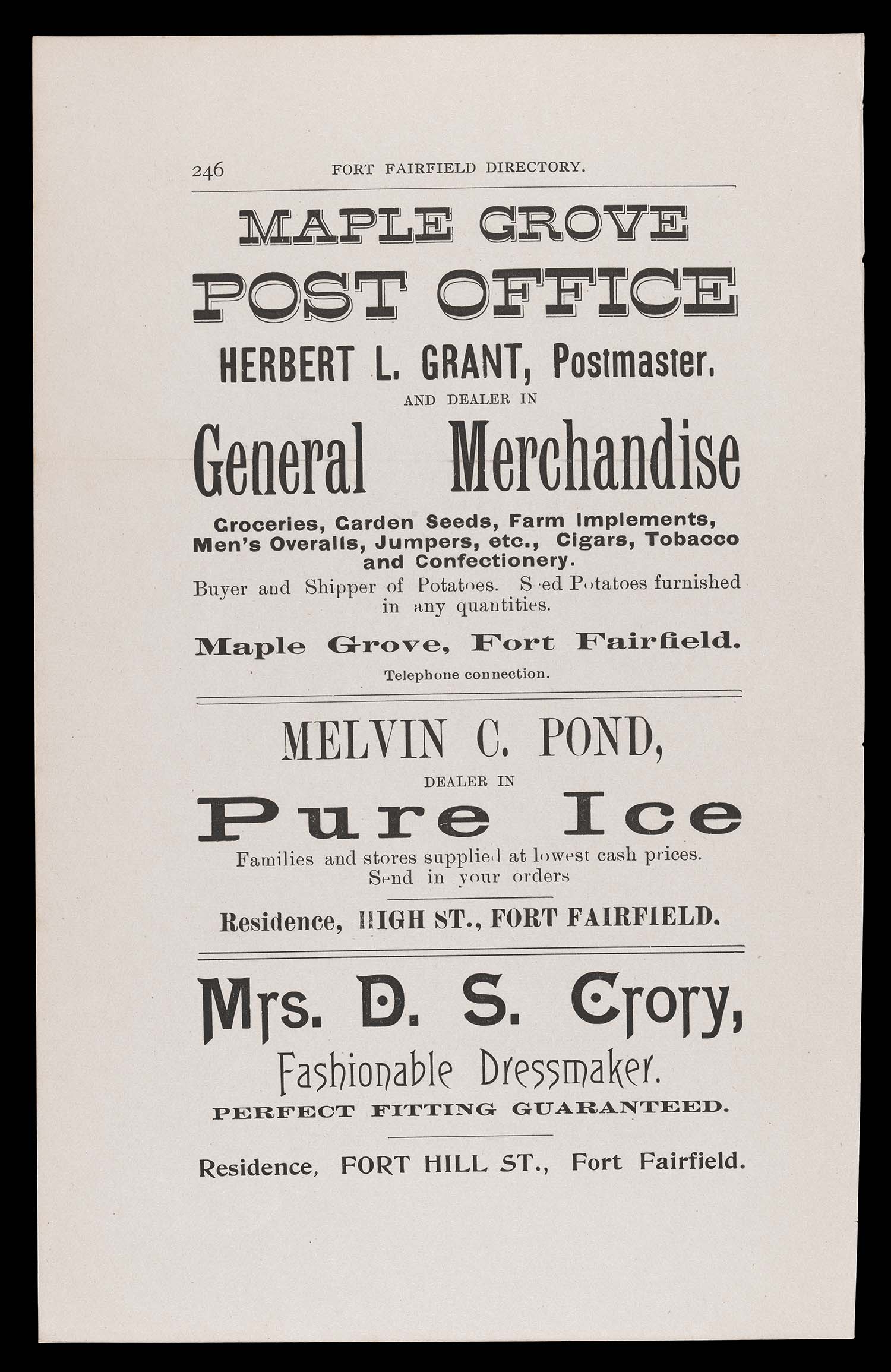 Name: Fort Fairfield Directory. Text (advertisement) page 71