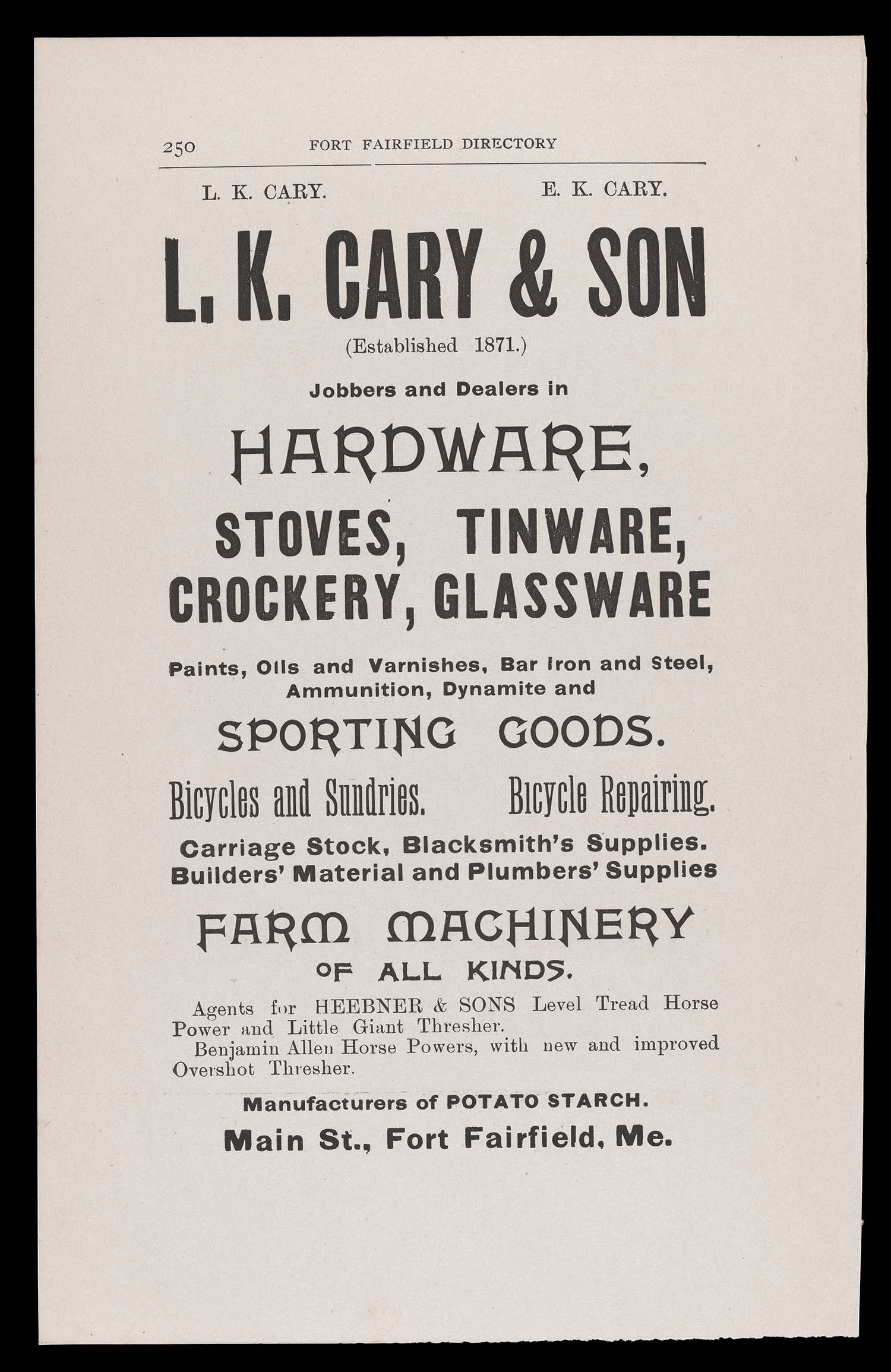 Name: Fort Fairfield Directory. Text (advertisement) page 72