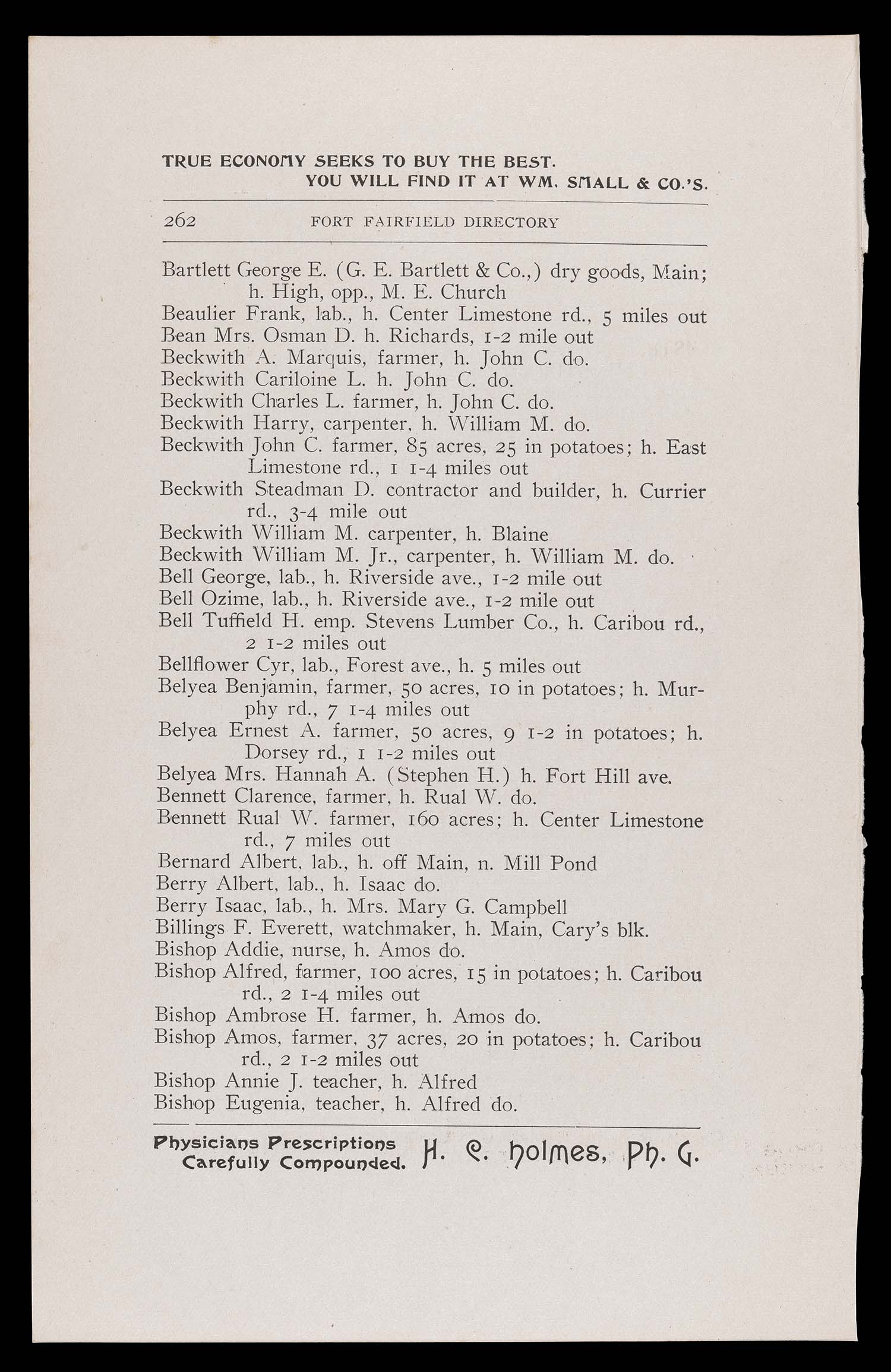 ↑ Parent: The Houlton directory, 1900 : a complete index to the residents, business, streets, etc. of the town of Houlton, Aroostook County, Maine with other useful information