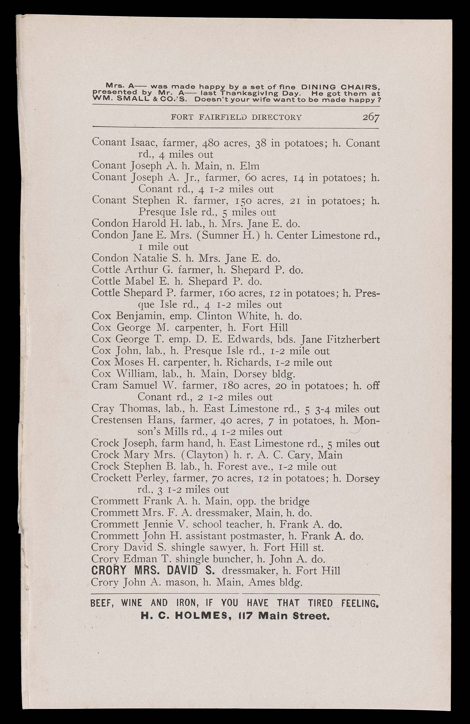 ↑ Parent: The Houlton directory, 1900 : a complete index to the residents, business, streets, etc. of the town of Houlton, Aroostook County, Maine with other useful information