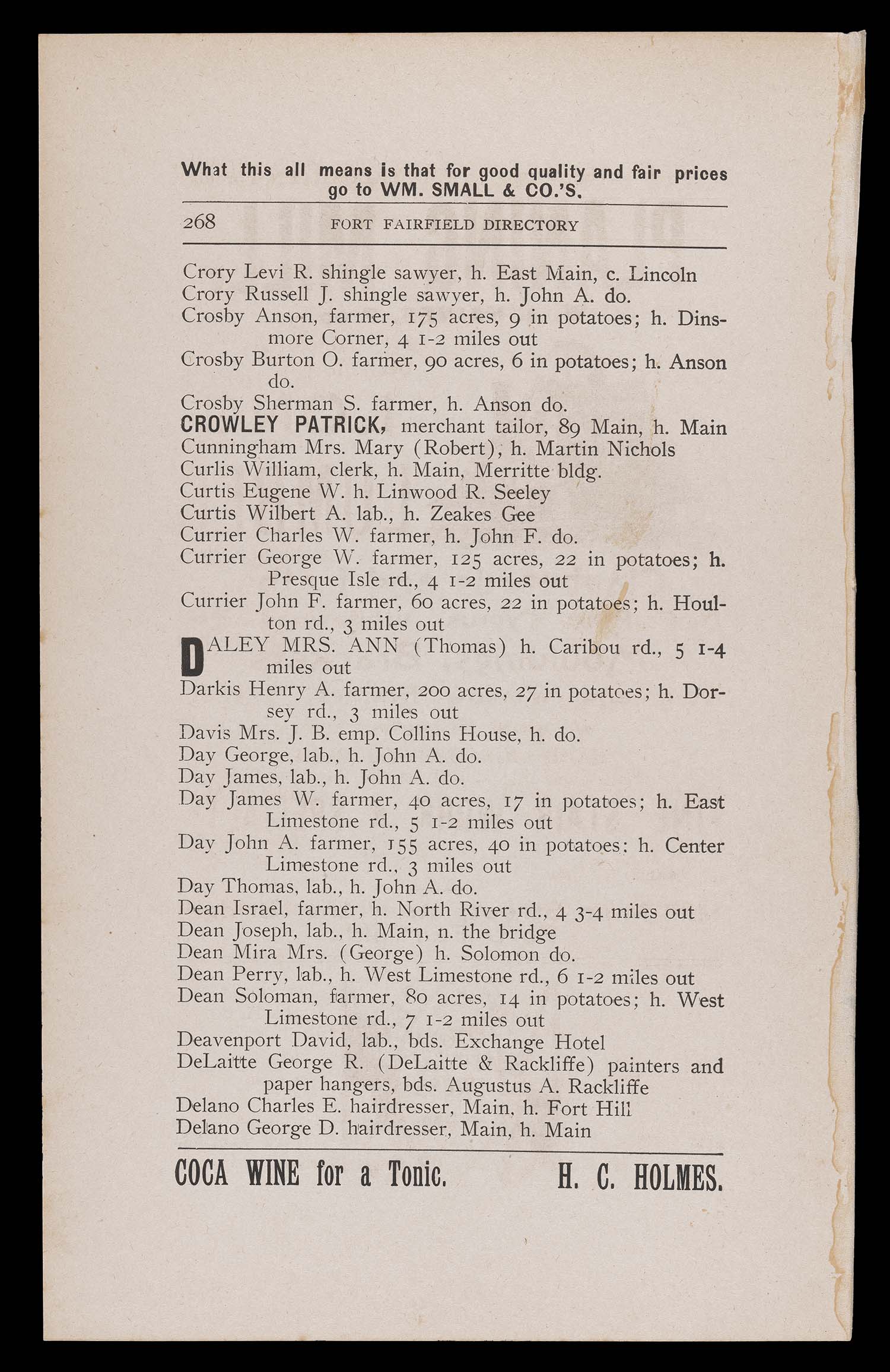 ↑ Parent: The Houlton directory, 1900 : a complete index to the residents, business, streets, etc. of the town of Houlton, Aroostook County, Maine with other useful information