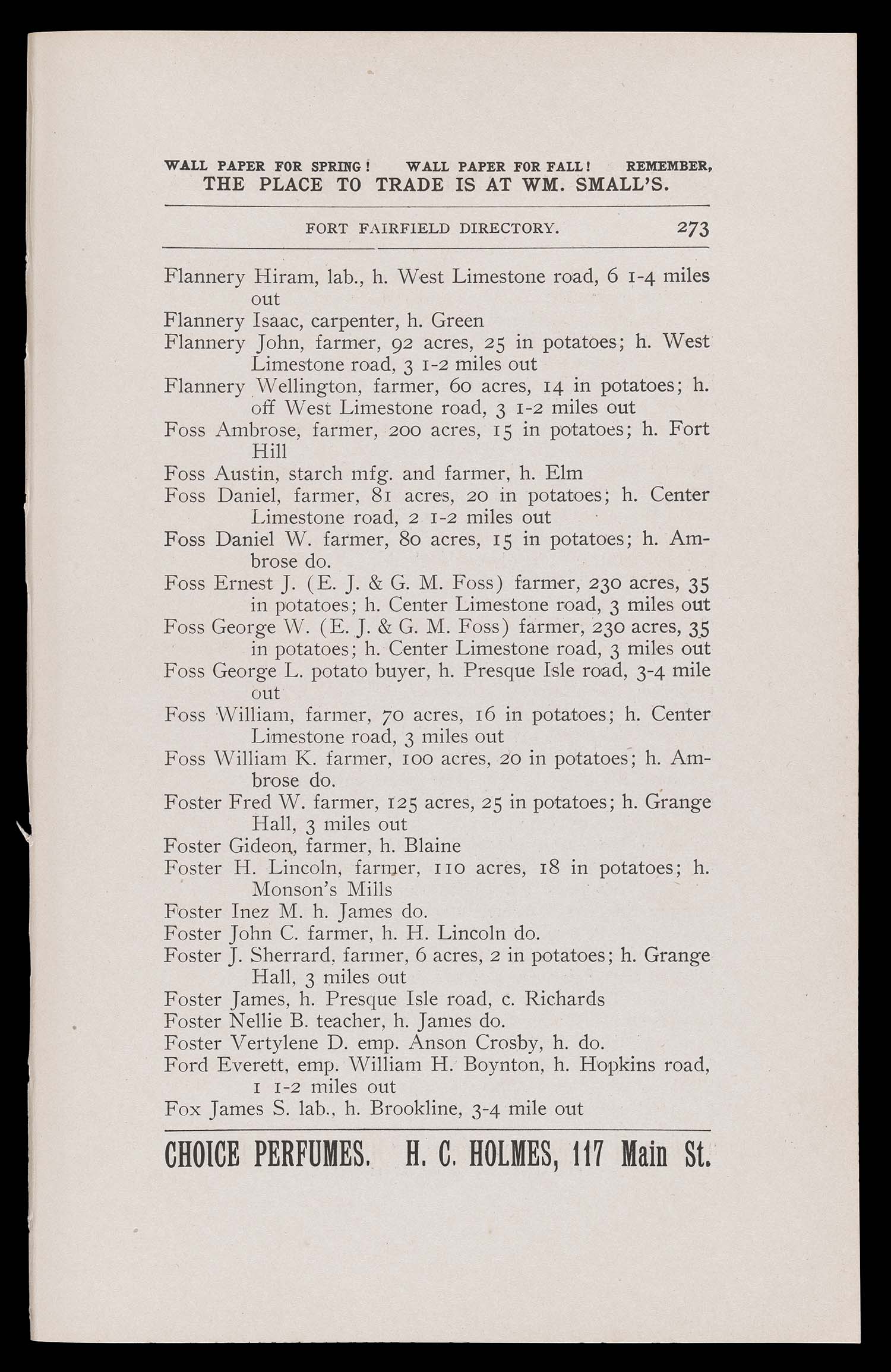 ↑ Parent: The Houlton directory, 1900 : a complete index to the residents, business, streets, etc. of the town of Houlton, Aroostook County, Maine with other useful information