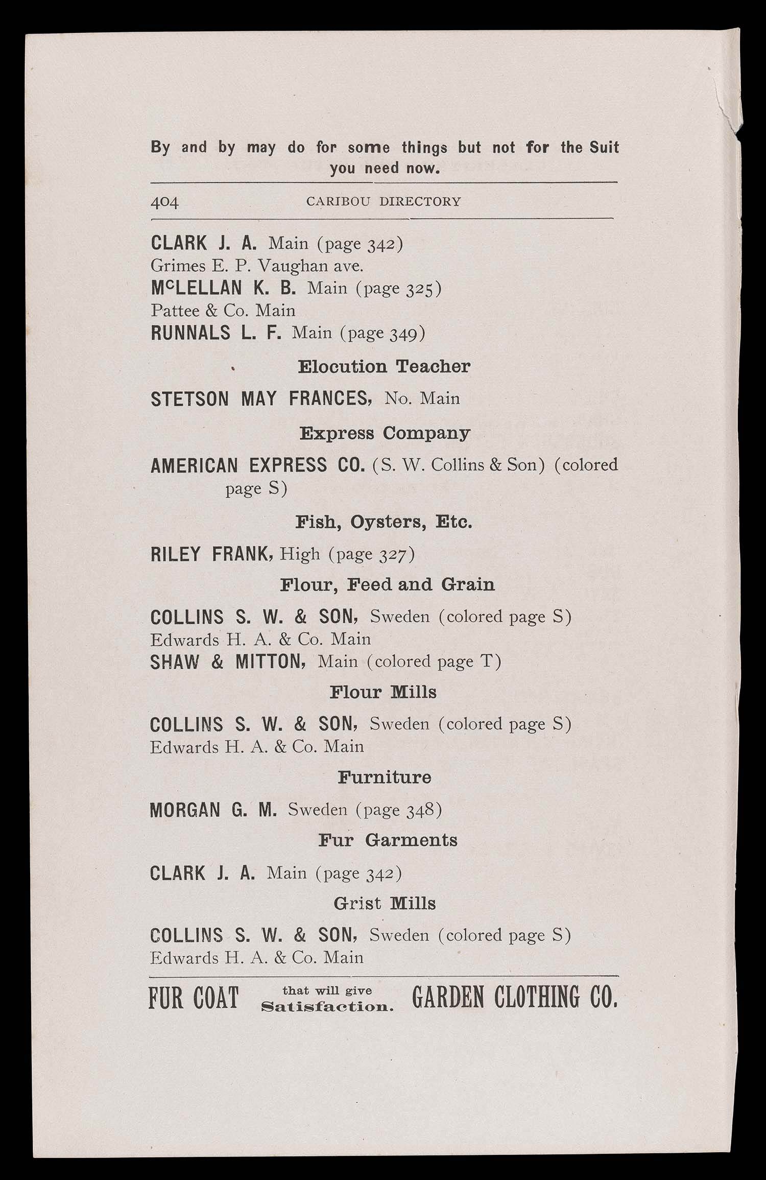 ↑ Parent: The Houlton directory, 1900 : a complete index to the residents, business, streets, etc. of the town of Houlton, Aroostook County, Maine with other useful information