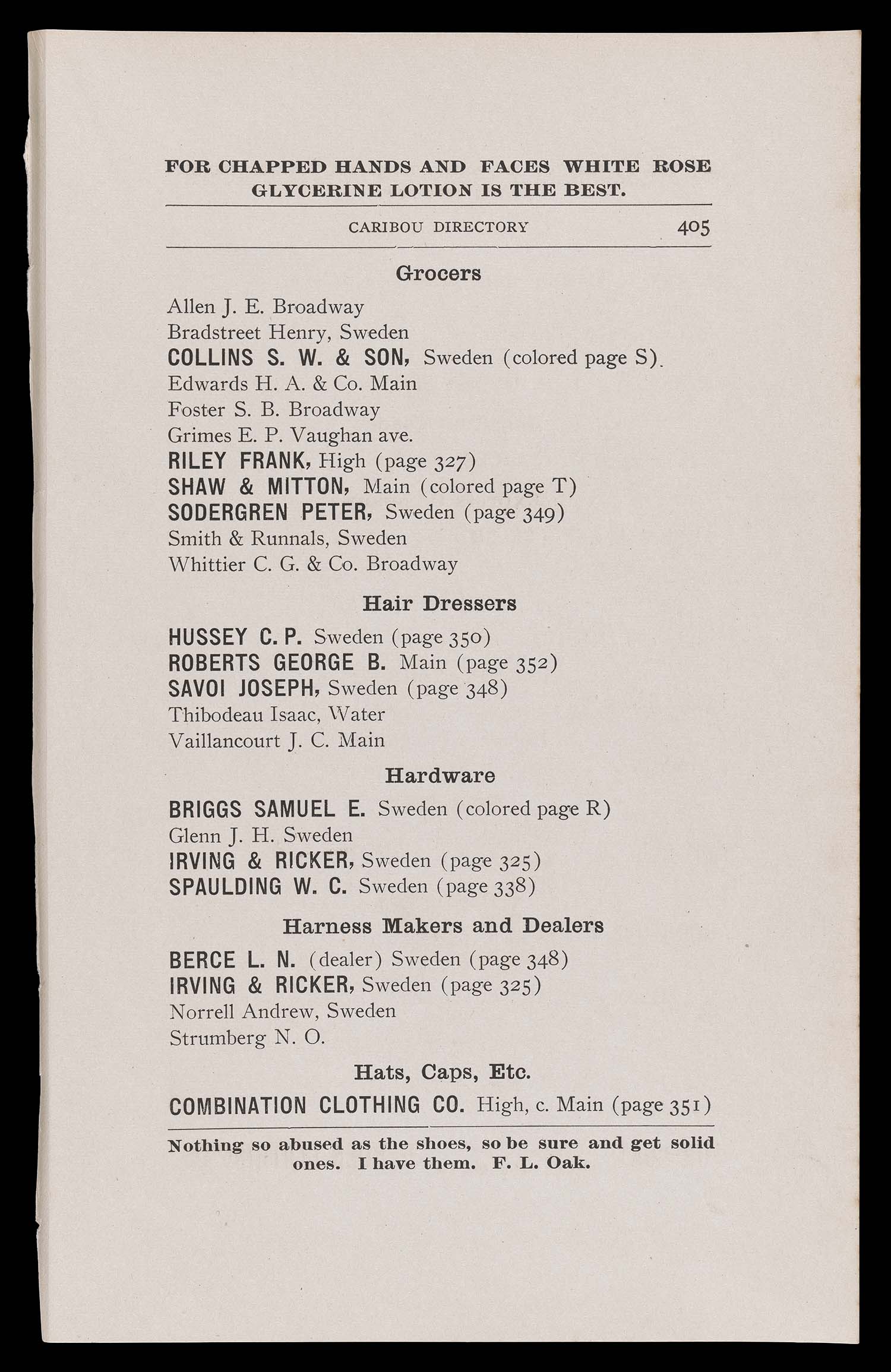 ↑ Parent: The Houlton directory, 1900 : a complete index to the residents, business, streets, etc. of the town of Houlton, Aroostook County, Maine with other useful information