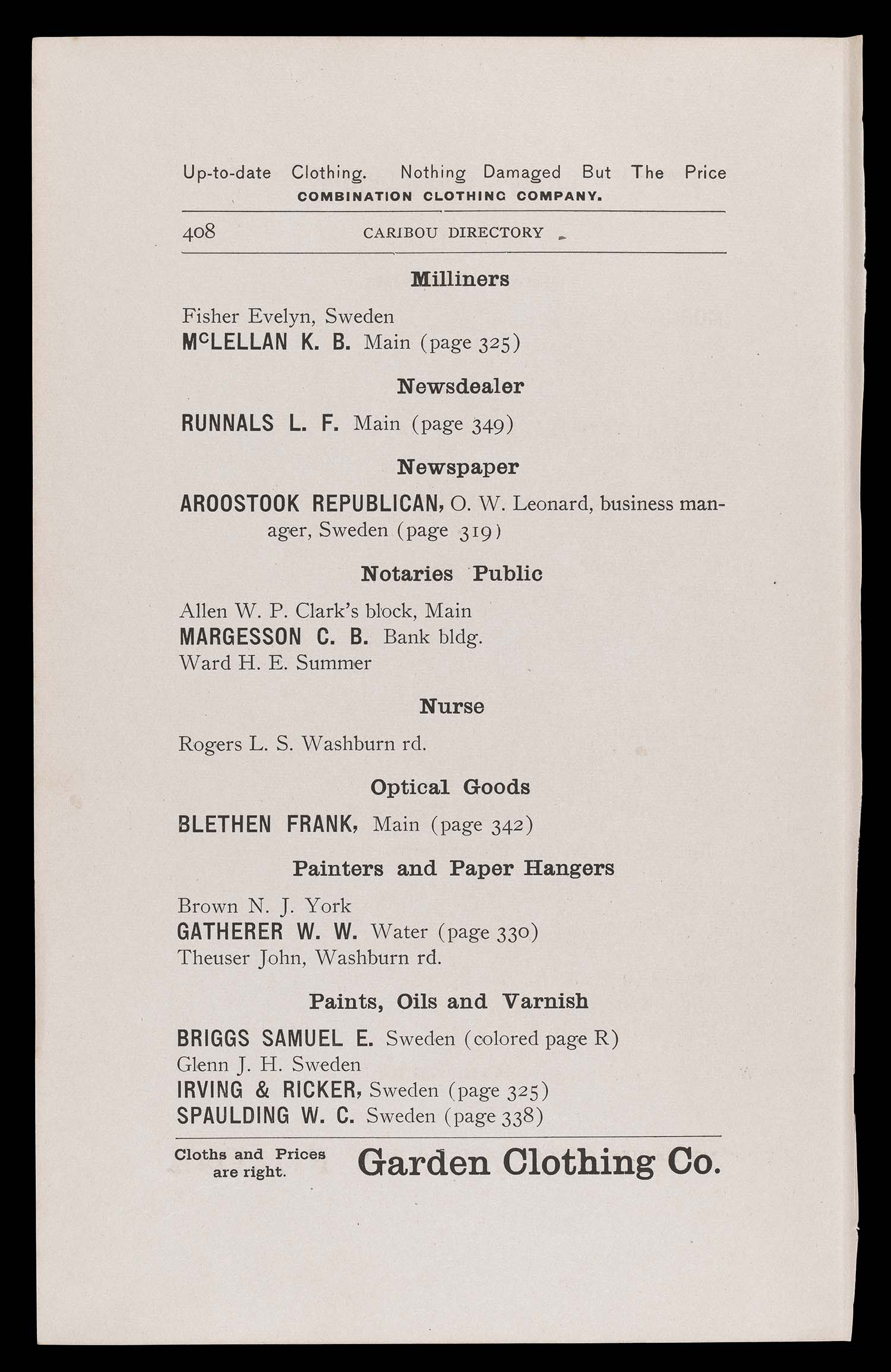 ↑ Parent: The Houlton directory, 1900 : a complete index to the residents, business, streets, etc. of the town of Houlton, Aroostook County, Maine with other useful information
