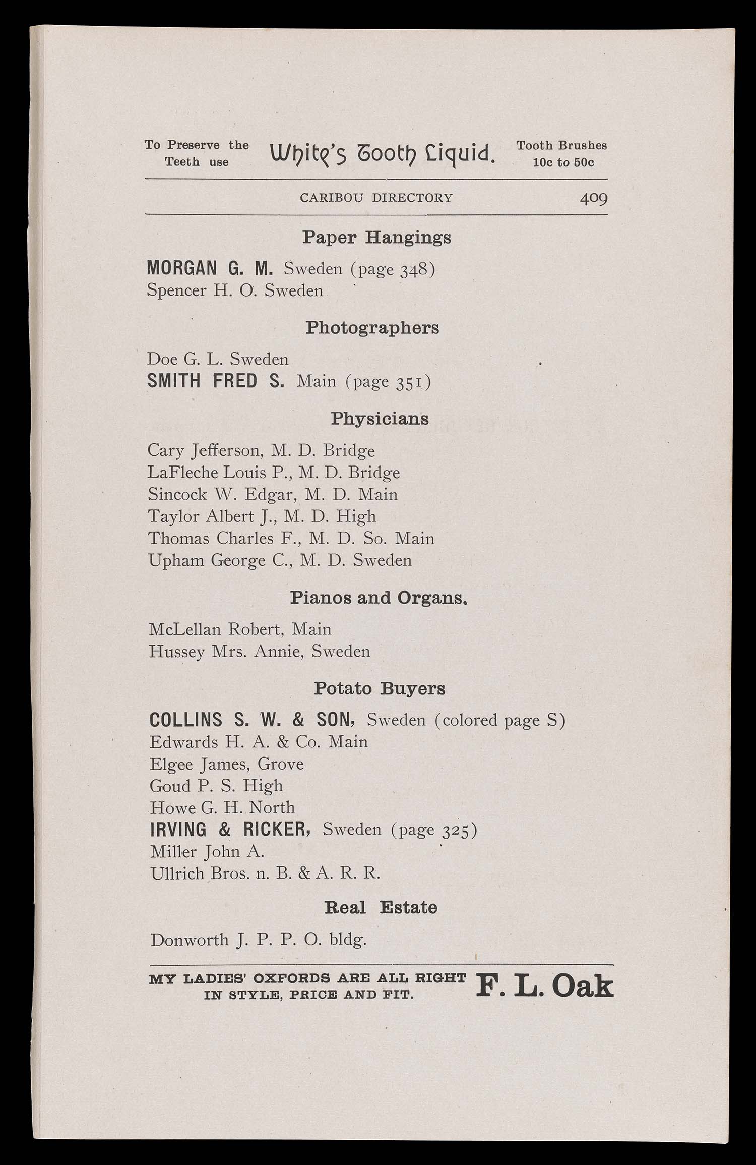 ↑ Parent: The Houlton directory, 1900 : a complete index to the residents, business, streets, etc. of the town of Houlton, Aroostook County, Maine with other useful information