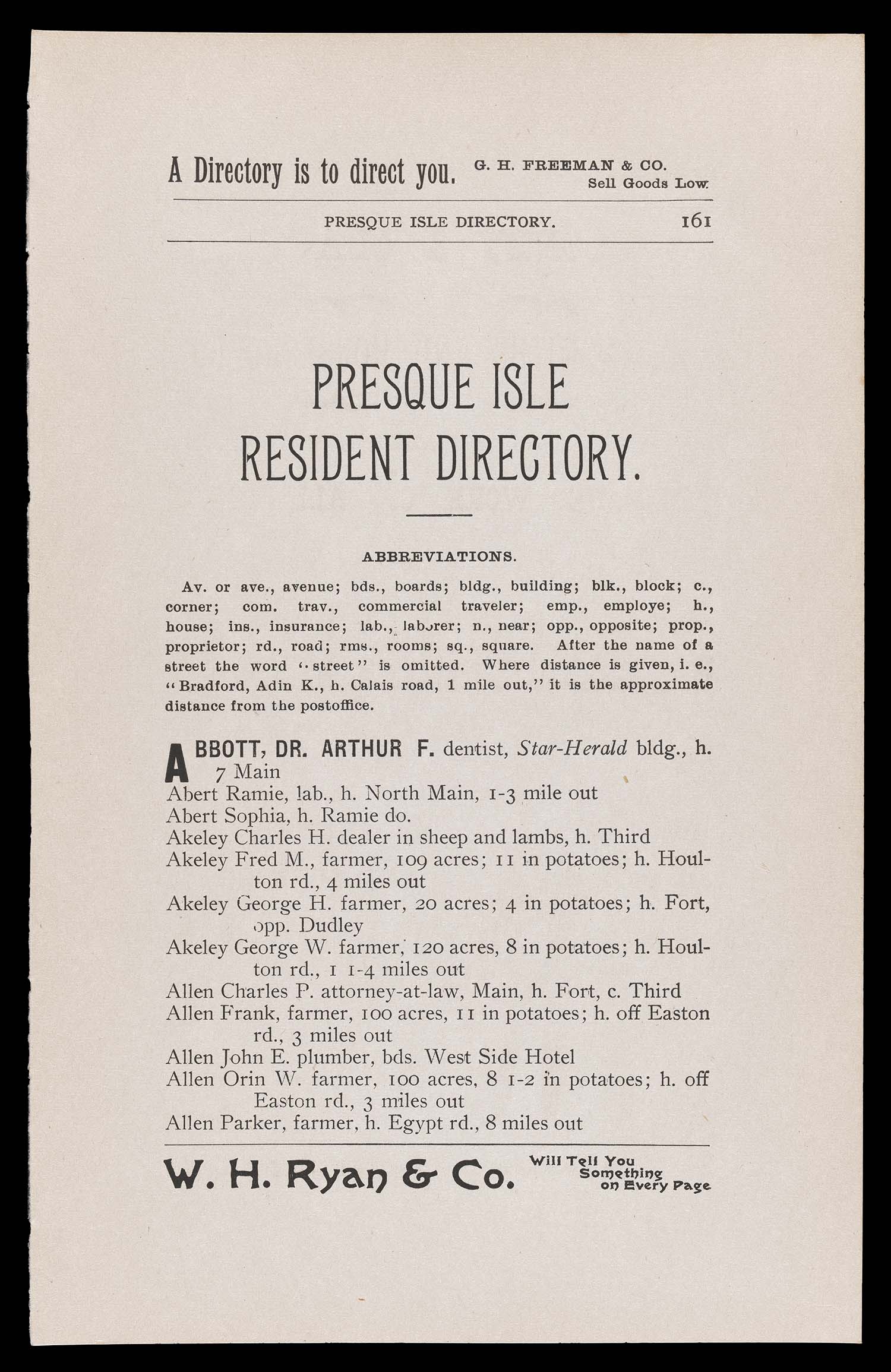 ↑ Parent: The Houlton directory, 1900 : a complete index to the residents, business, streets, etc. of the town of Houlton, Aroostook County, Maine with other useful information