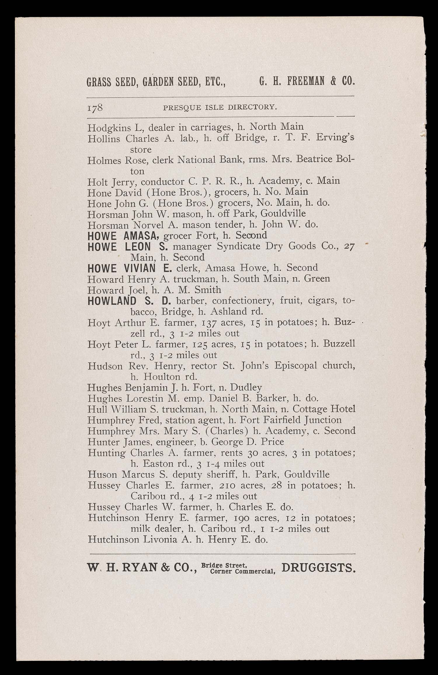 ↑ Parent: The Houlton directory, 1900 : a complete index to the residents, business, streets, etc. of the town of Houlton, Aroostook County, Maine with other useful information