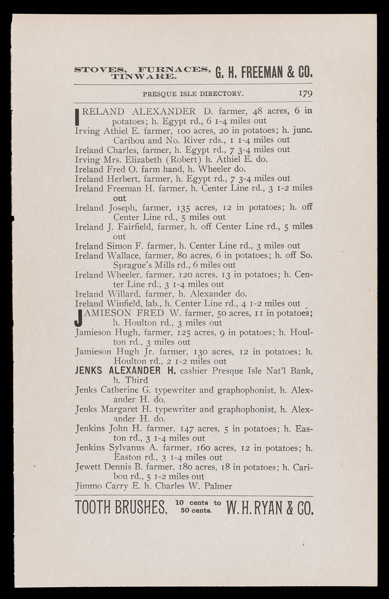 ↑ Parent: The Houlton directory, 1900 : a complete index to the residents, business, streets, etc. of the town of Houlton, Aroostook County, Maine with other useful information