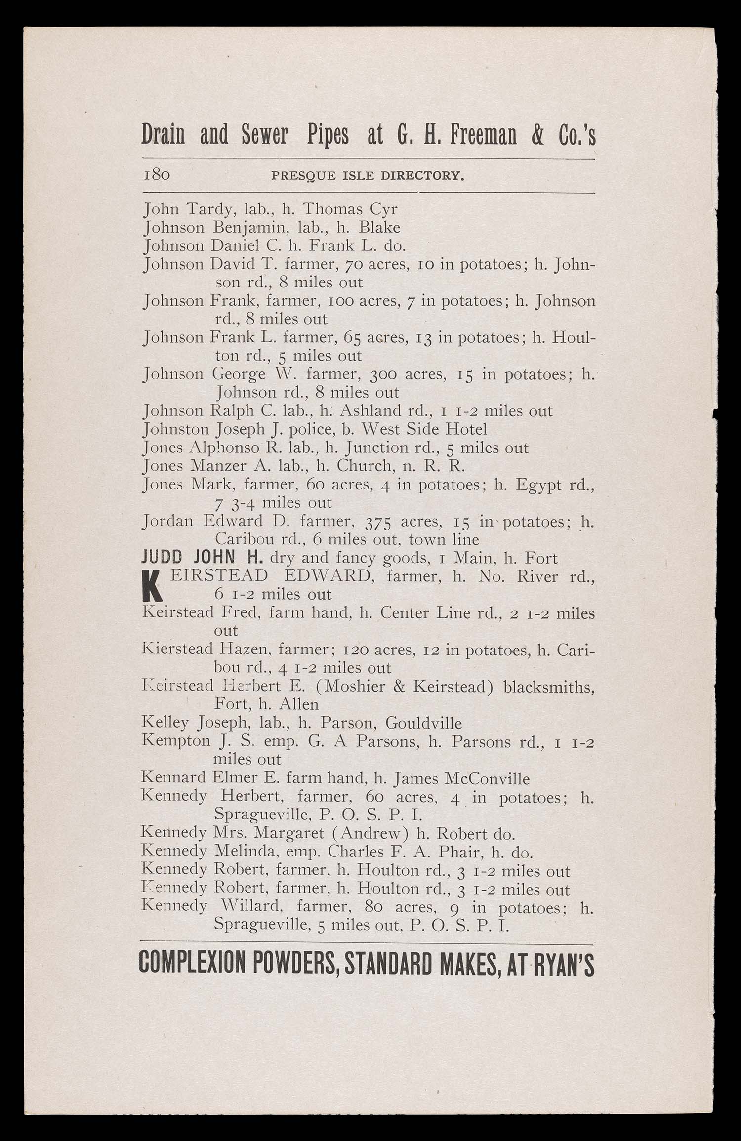 ↑ Parent: The Houlton directory, 1900 : a complete index to the residents, business, streets, etc. of the town of Houlton, Aroostook County, Maine with other useful information