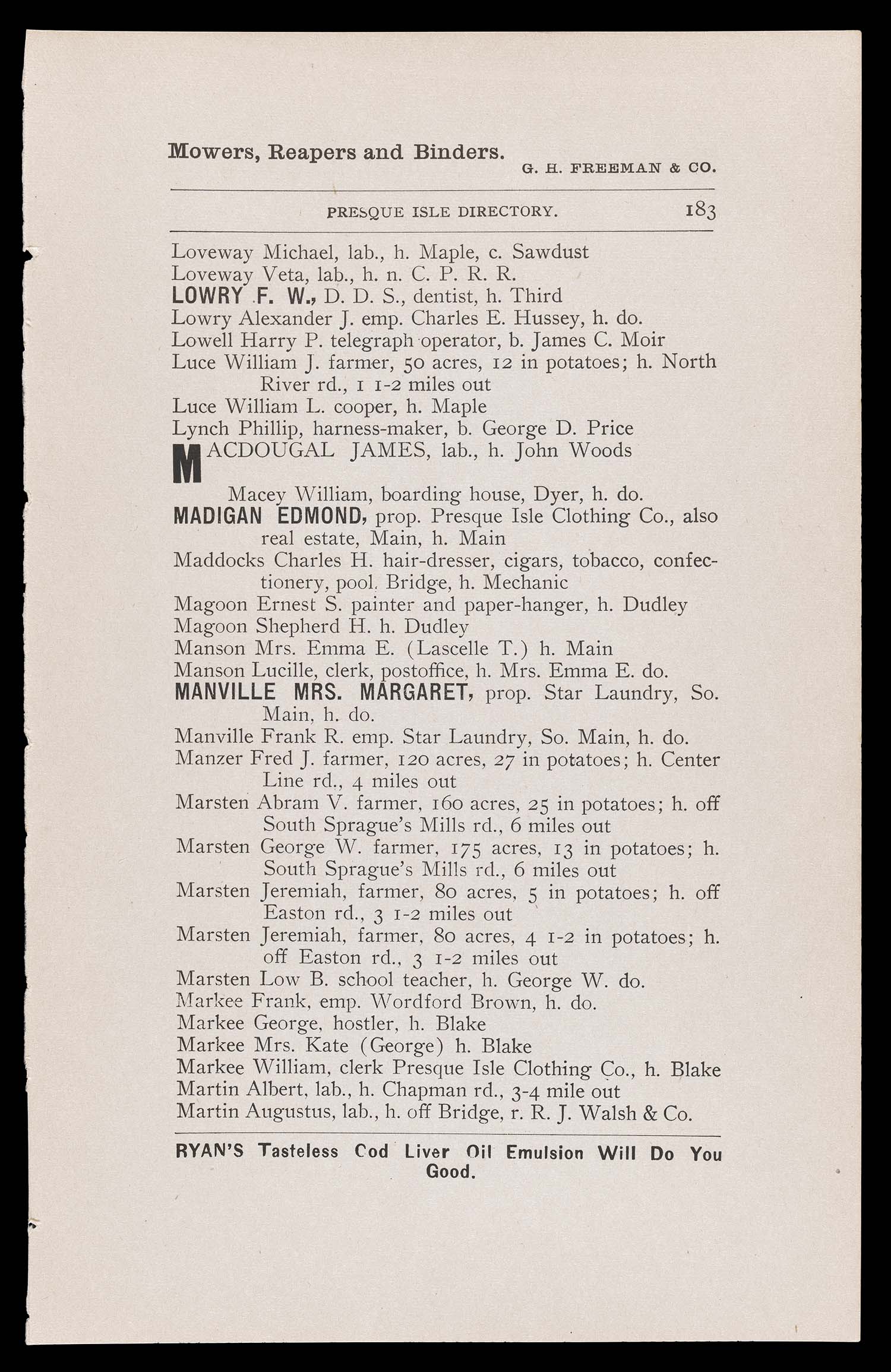 ↑ Parent: The Houlton directory, 1900 : a complete index to the residents, business, streets, etc. of the town of Houlton, Aroostook County, Maine with other useful information
