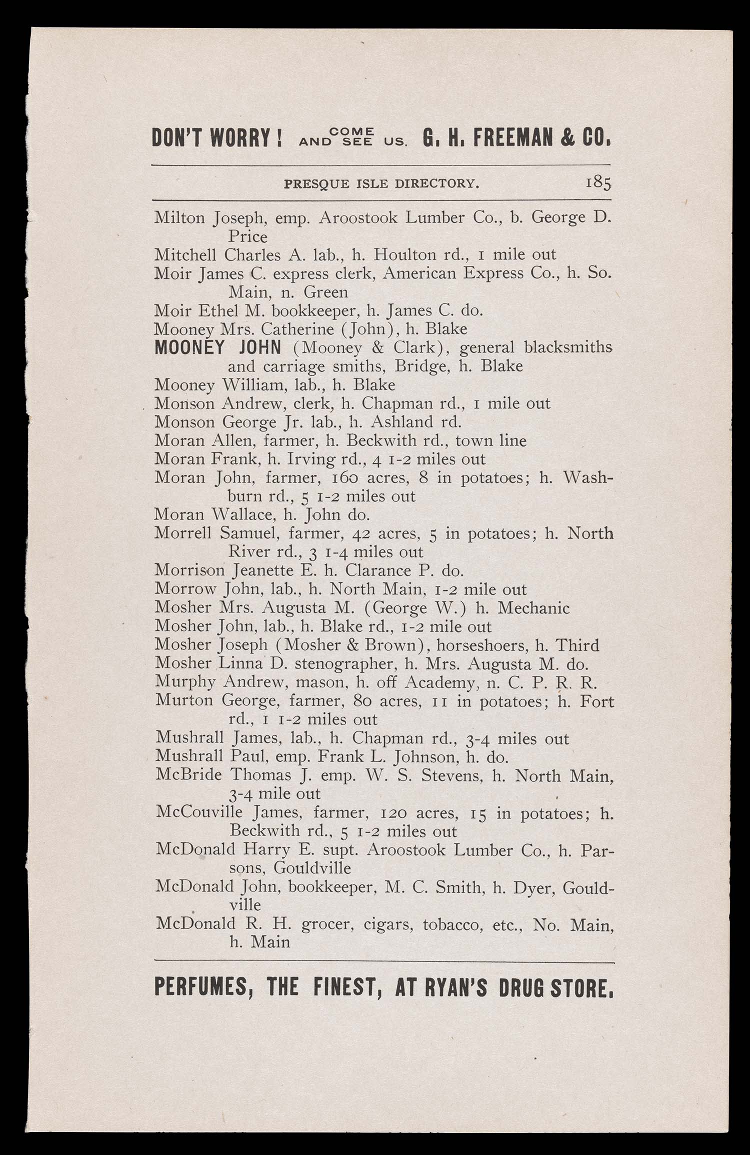 ↑ Parent: The Houlton directory, 1900 : a complete index to the residents, business, streets, etc. of the town of Houlton, Aroostook County, Maine with other useful information