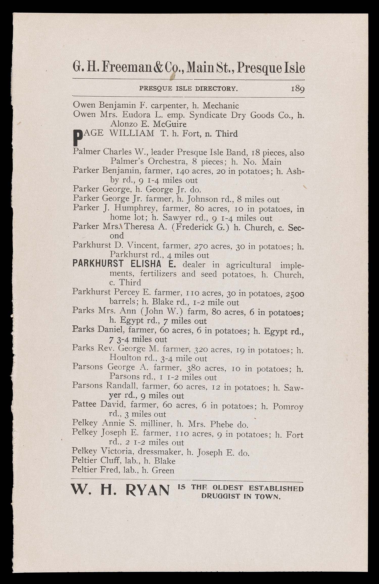 ↑ Parent: The Houlton directory, 1900 : a complete index to the residents, business, streets, etc. of the town of Houlton, Aroostook County, Maine with other useful information