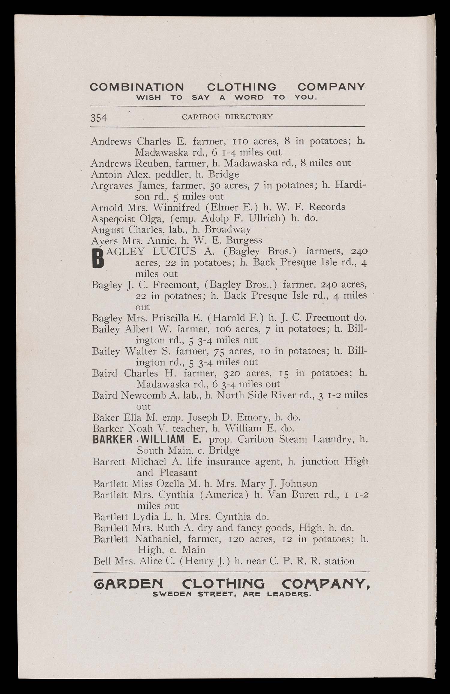 ↑ Parent: The Houlton directory, 1900 : a complete index to the residents, business, streets, etc. of the town of Houlton, Aroostook County, Maine with other useful information