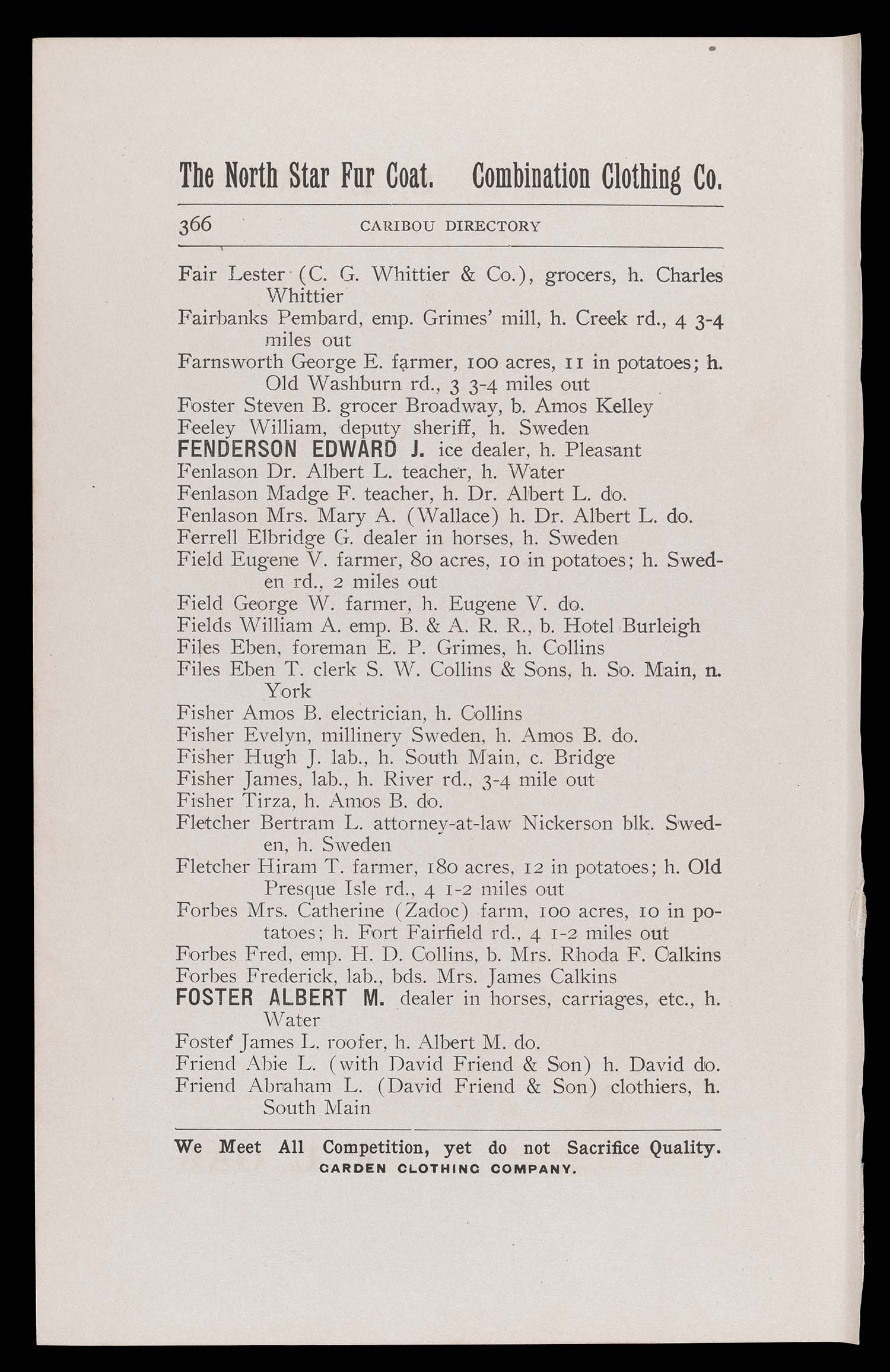 ↑ Parent: The Houlton directory, 1900 : a complete index to the residents, business, streets, etc. of the town of Houlton, Aroostook County, Maine with other useful information