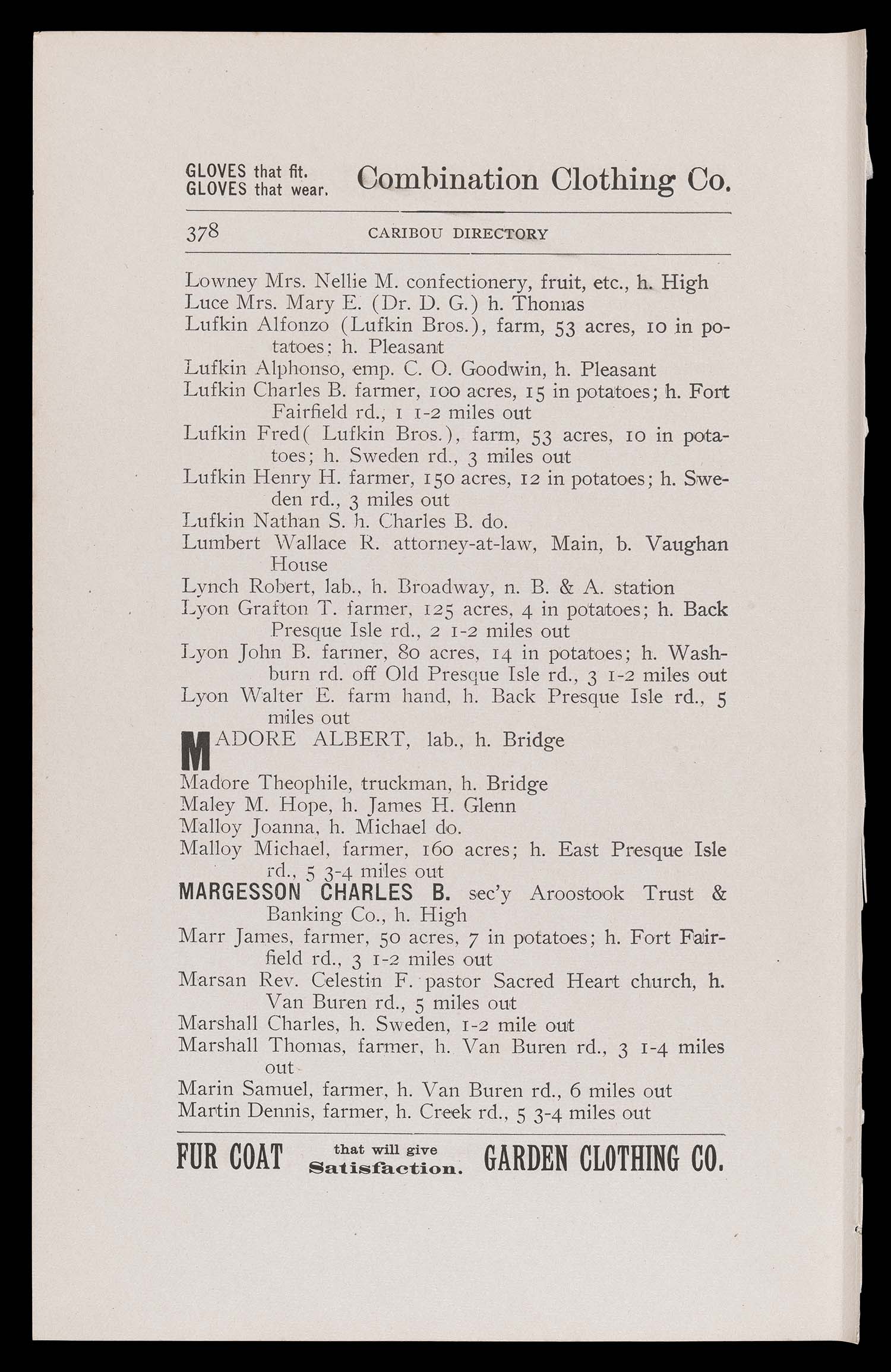 ↑ Parent: The Houlton directory, 1900 : a complete index to the residents, business, streets, etc. of the town of Houlton, Aroostook County, Maine with other useful information