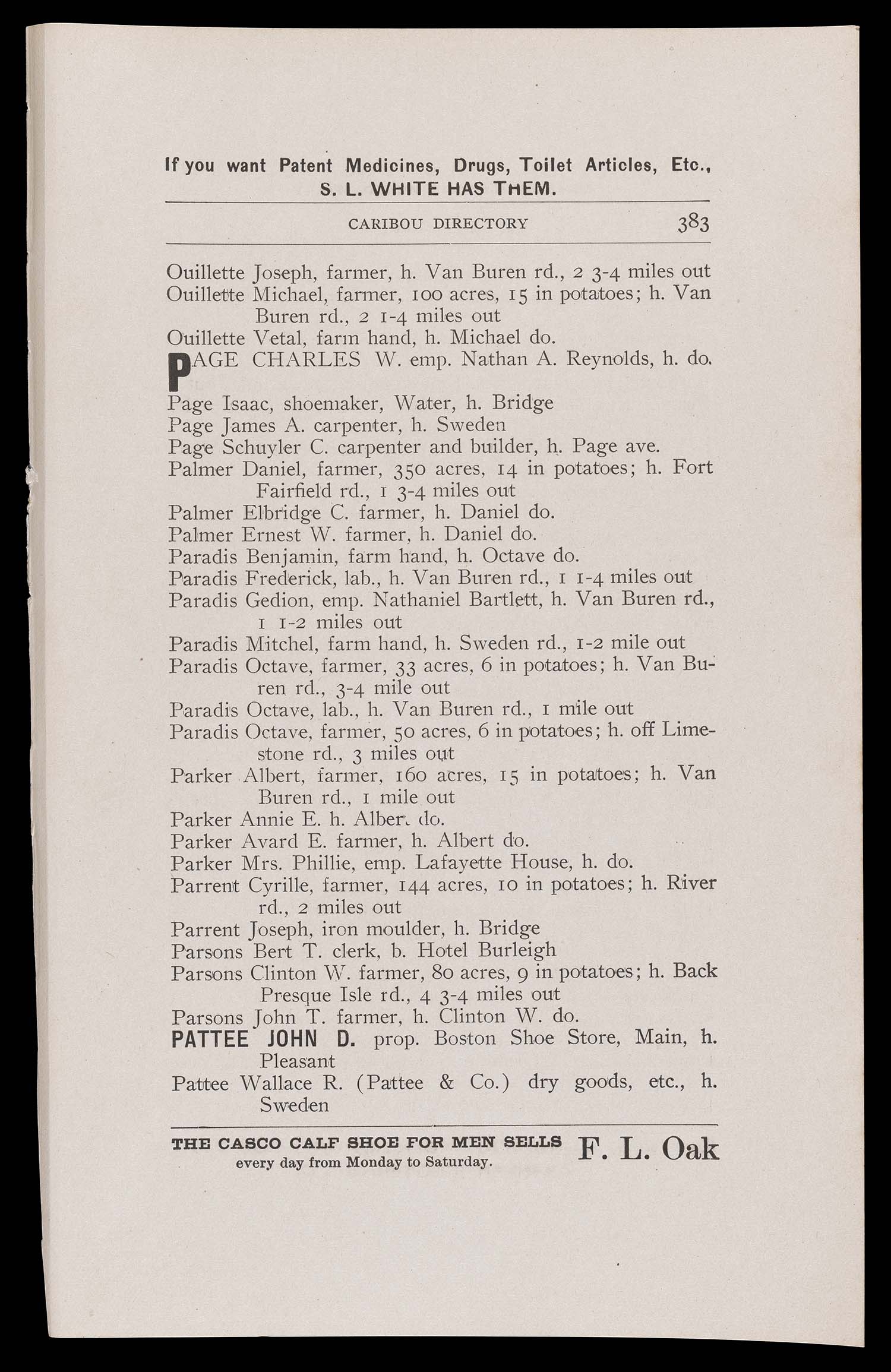 ↑ Parent: The Houlton directory, 1900 : a complete index to the residents, business, streets, etc. of the town of Houlton, Aroostook County, Maine with other useful information