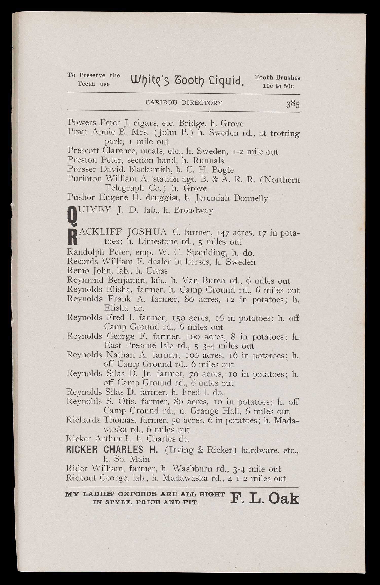 ↑ Parent: The Houlton directory, 1900 : a complete index to the residents, business, streets, etc. of the town of Houlton, Aroostook County, Maine with other useful information