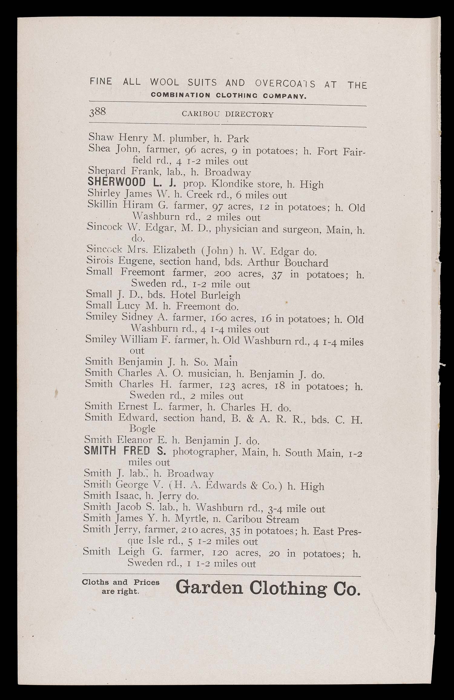 ↑ Parent: The Houlton directory, 1900 : a complete index to the residents, business, streets, etc. of the town of Houlton, Aroostook County, Maine with other useful information