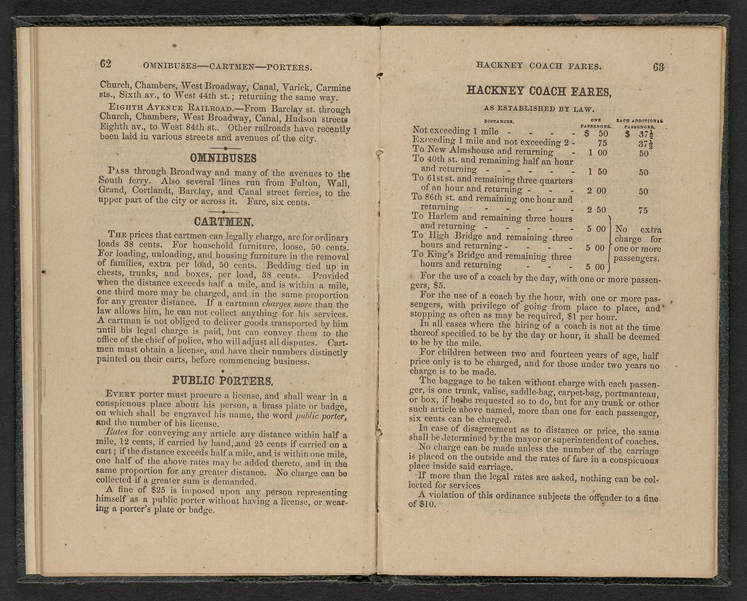 Name: Omnibuses--Cartmen--Porters. / Hackney Coach Fares.