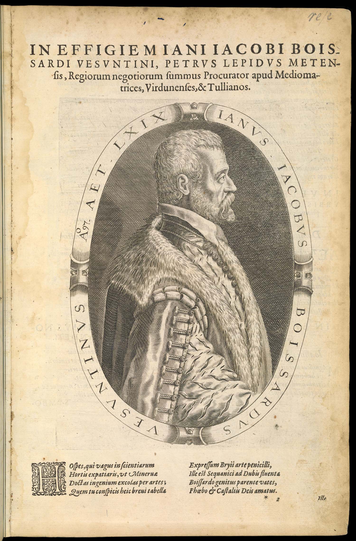 Name: In effigiem Jani Jacobi Boissardi vesuntini, petrus lepidus metensis, regiorum negotiorum summus procurator apud mediomatrices, virdunenses, & tullianos.