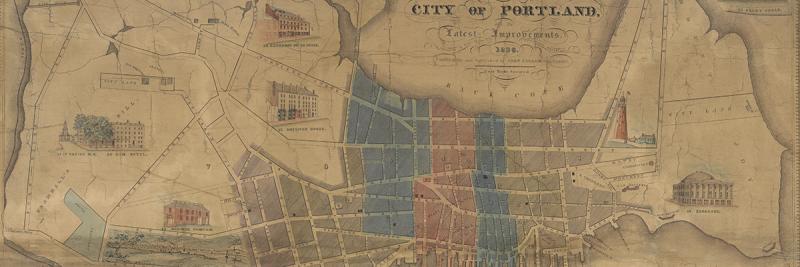 In this special, online exhibition offers a history of the printed urban maps of Portland, Maine, from the early nineteenth century to the great fire of July 4th, 1866. It is a history of how Portland was construed as a distinctive urban place, as a moral center of commerce, as a victim of perfidy, and as a site of remarkable and repeated rebirth and growth.
